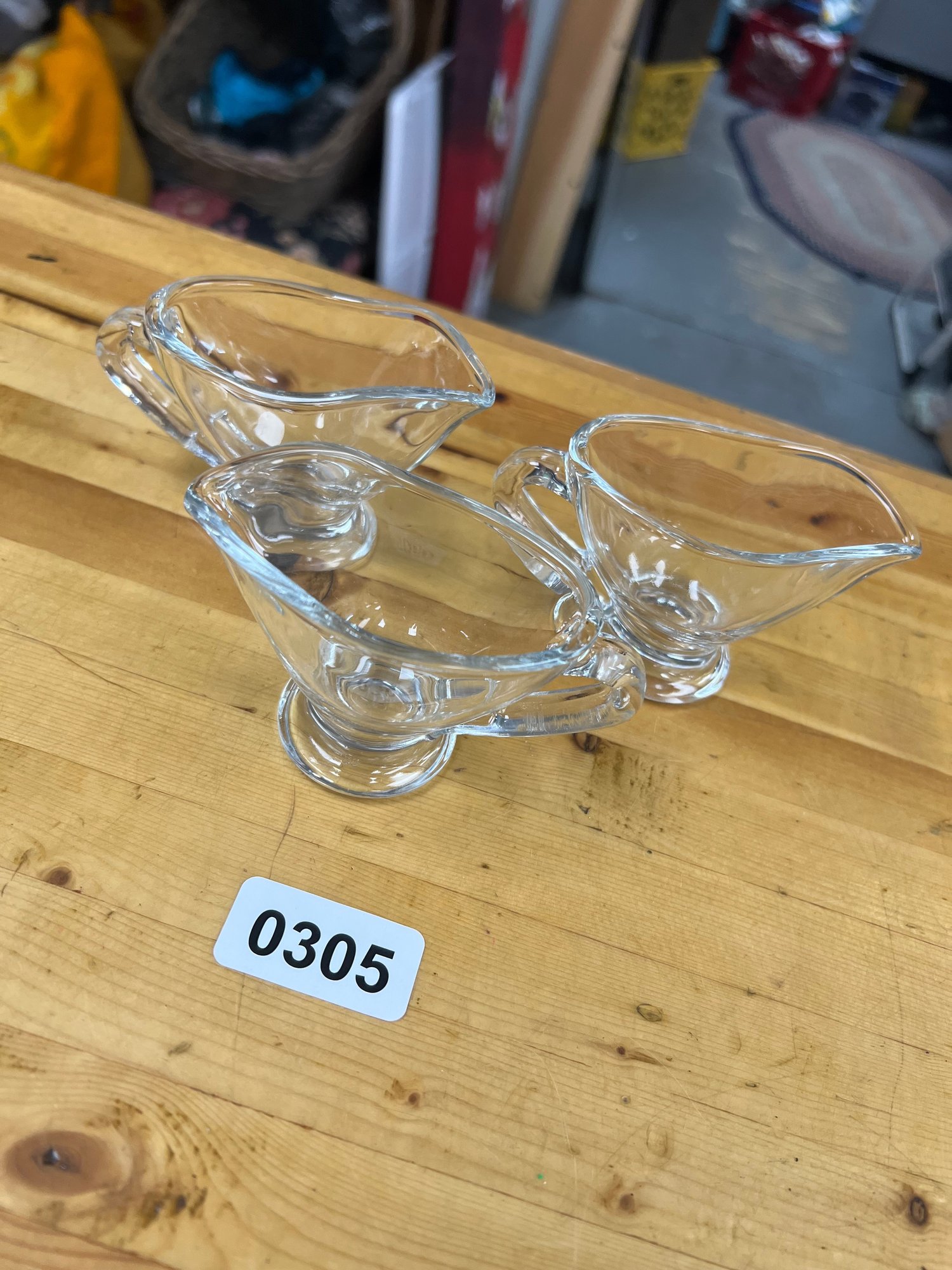 Set of 3 Clear Glass Sauce Boats – A timeless trio of glass serveware, perfect for gravies, sauces, or dressings. Simple, elegant, and versatile for any table setting.