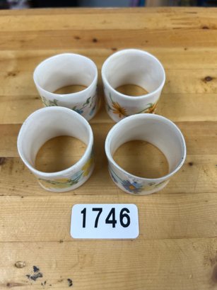 This set includes four vintage ceramic napkin holders, each featuring charming flower-themed designs.