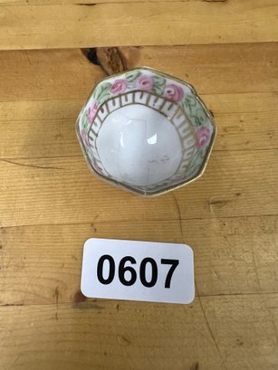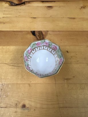 Delicate porcelain salt cellar with vintage charm — perfect for table or display.
