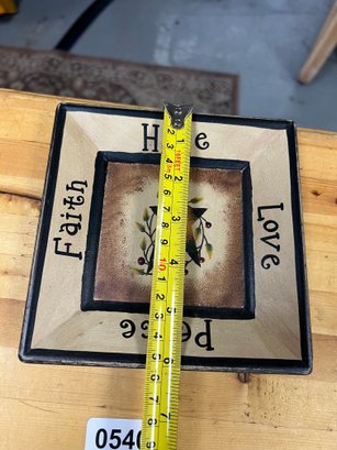 Faith, Hope, Love and Peace decorative hanging primitive style decor. Rustic charm meets simplicity in this small wooden plate — ideal for display or tabletop accent.