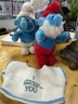 - **Text**: Accompanying the plush toys is a playful bib that reads, "I SMURF YOU," in bold lettering.