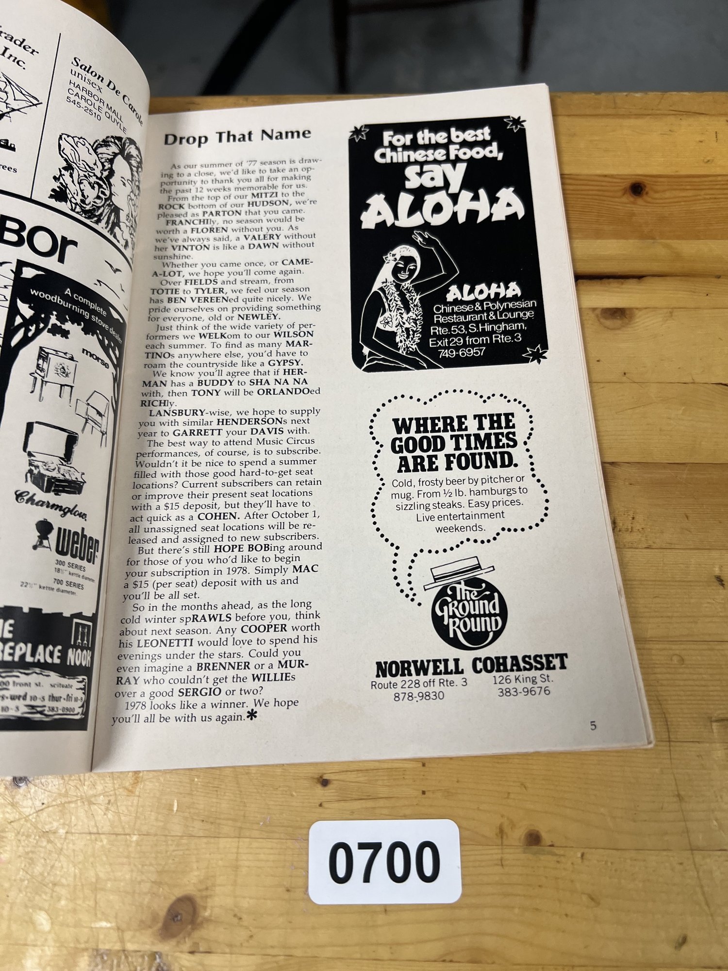 Vintage 1977 South Shore Music Circus playbill — great theatre collectible.