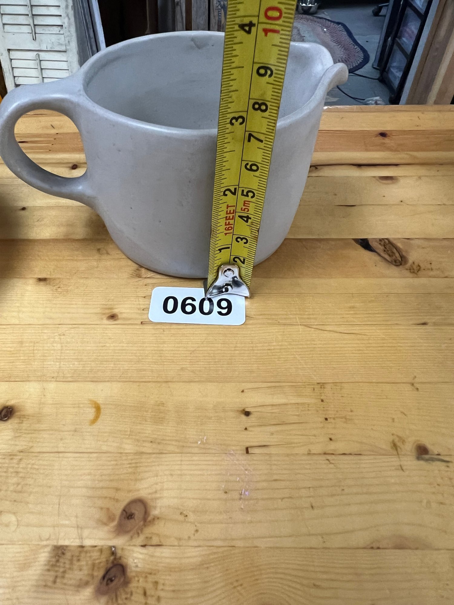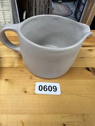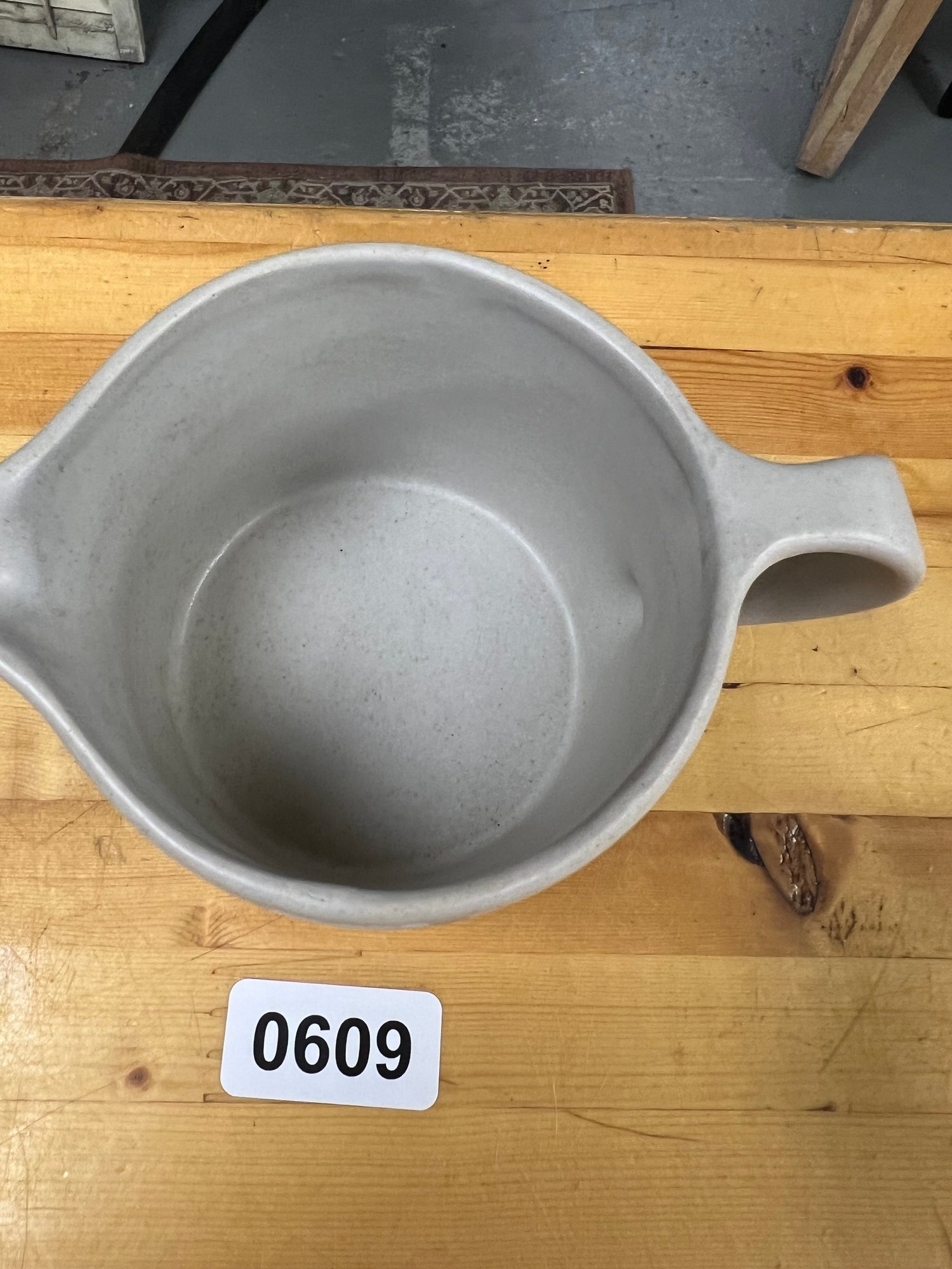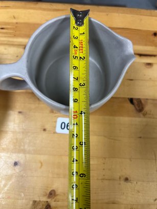 Rustic stoneware pitcher featuring colorful fruit artwork — functional and decorative.