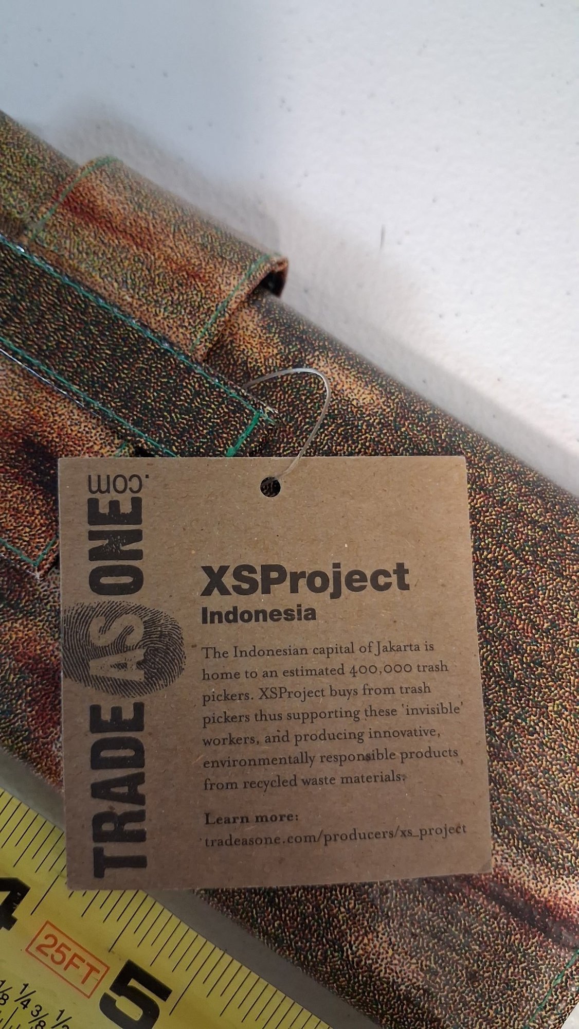 This unique wallet is handcrafted from recycled materials, giving it a one-of-a-kind look and eco-conscious appeal. Made in Indonesia and part of the XSProject line, each piece supports sustainable practices and creative reuse.