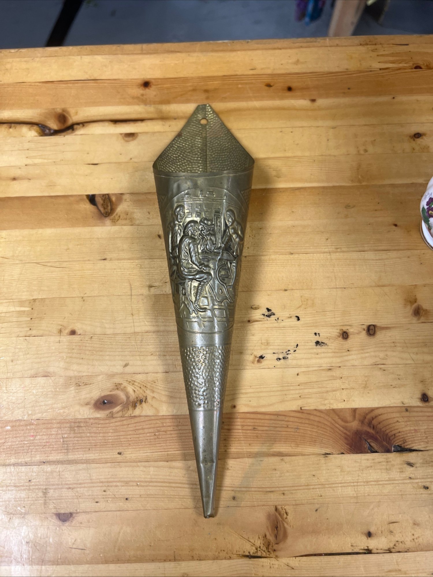 Up for auction is a stunning vintage brass match holder wall hanger, a perfect blend of functionality and decorative charm. This exquisite piece features intricate detailing and a beautiful patina that adds character and warmth to any space.