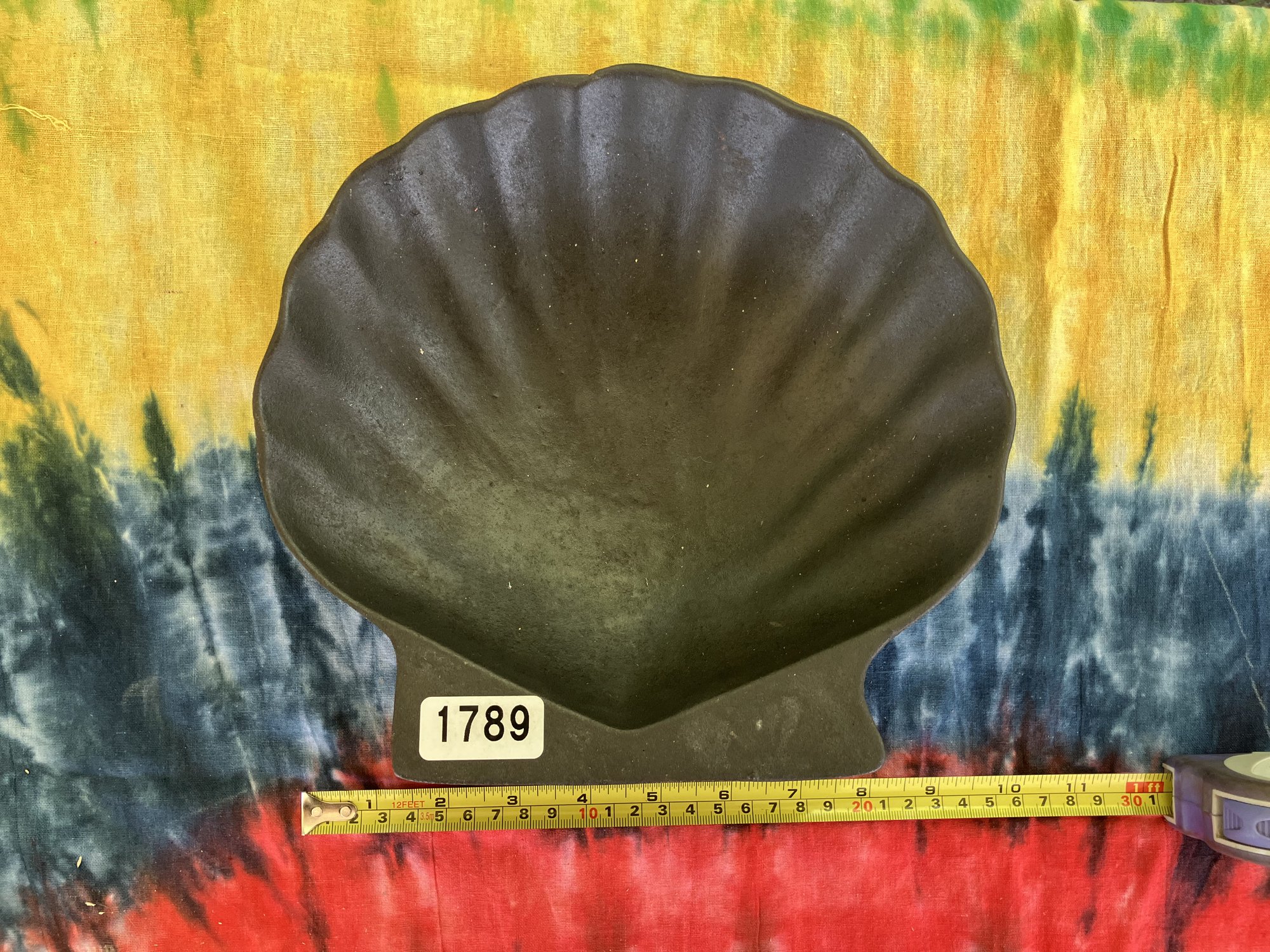 Add a touch of coastal charm to your home decor with this vintage cast iron shell-shaped trinket dish. This beautifully crafted dish features intricate detailing that mimics the natural texture and shape of a seashell, making it a perfect accent piece for any room.