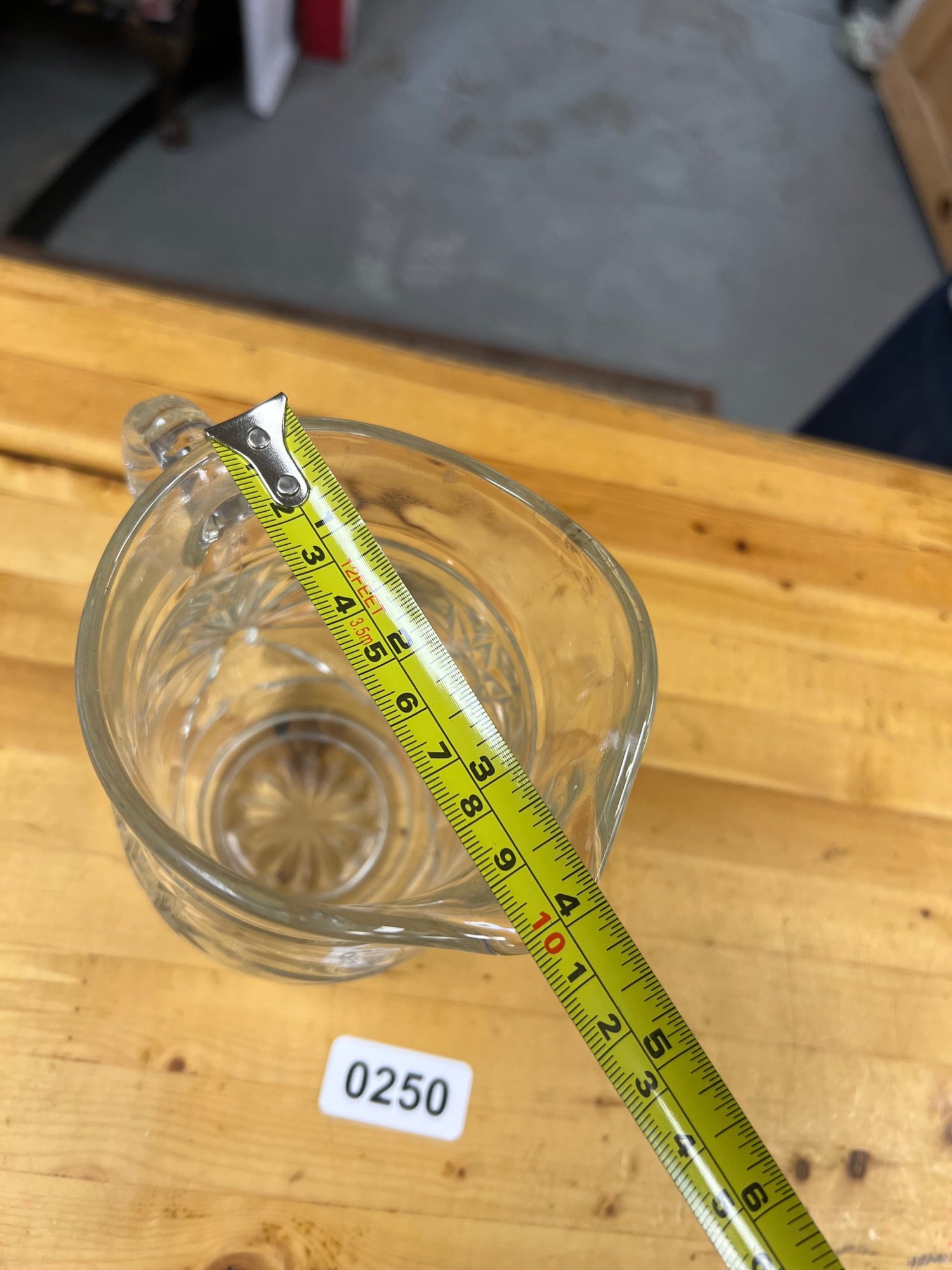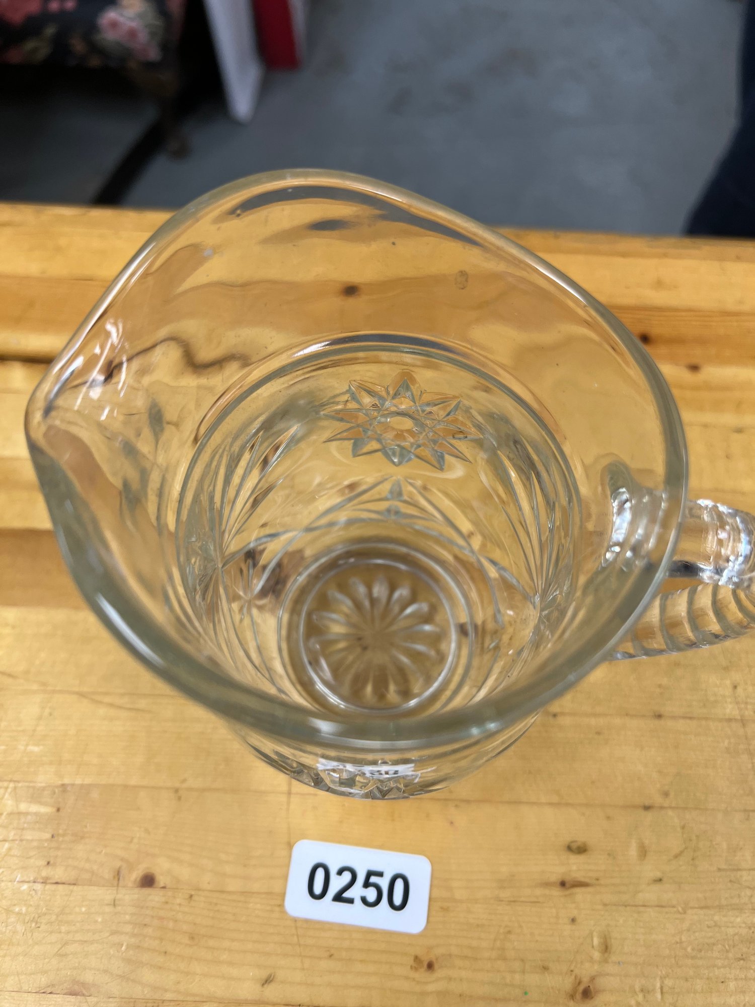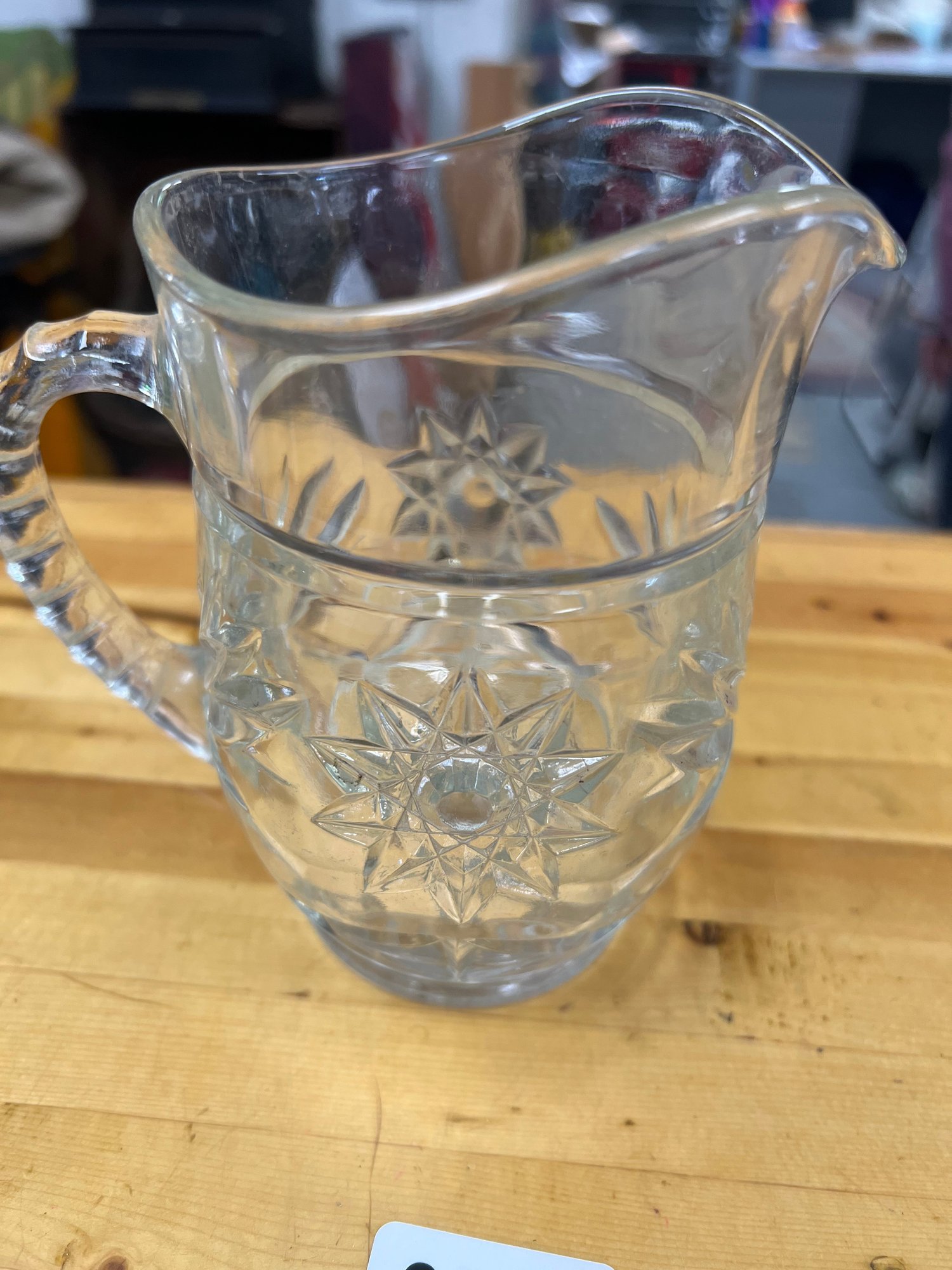 Vintage Cut Glass Pitcher – Elegant and timeless, this clear glass pitcher features intricate cut designs that catch the light beautifully. Perfect for serving drinks or displaying as a decorative centerpiece.