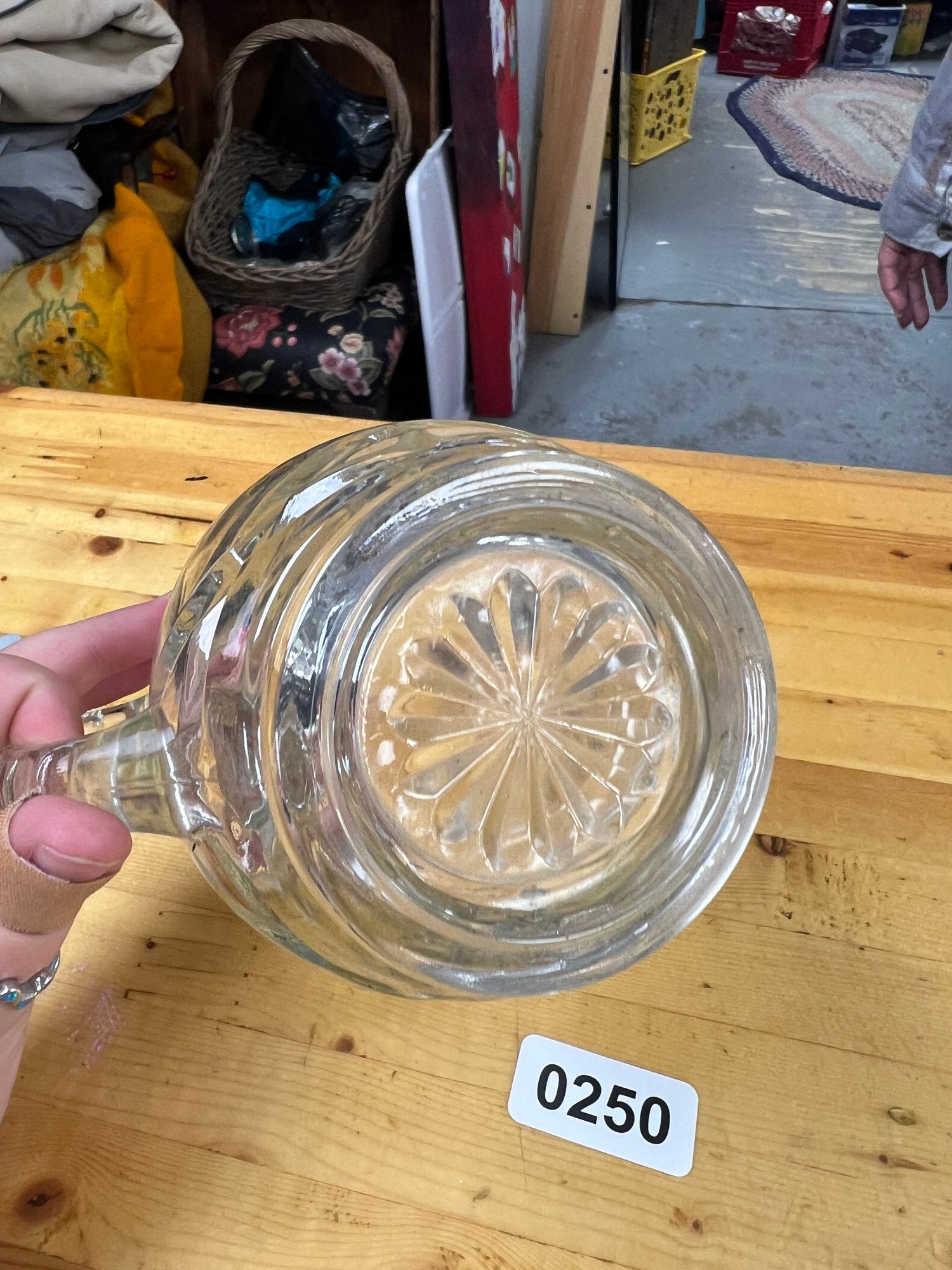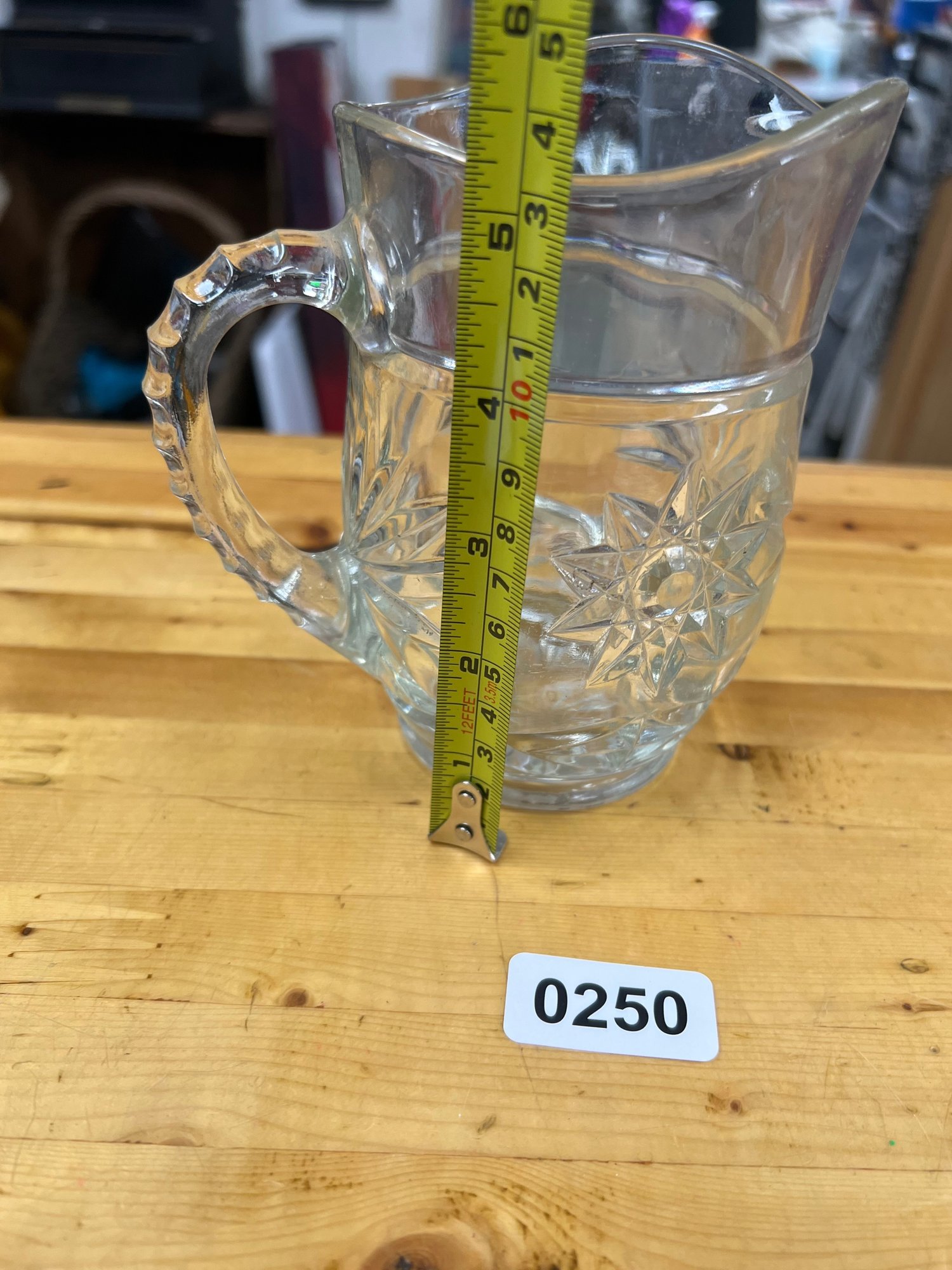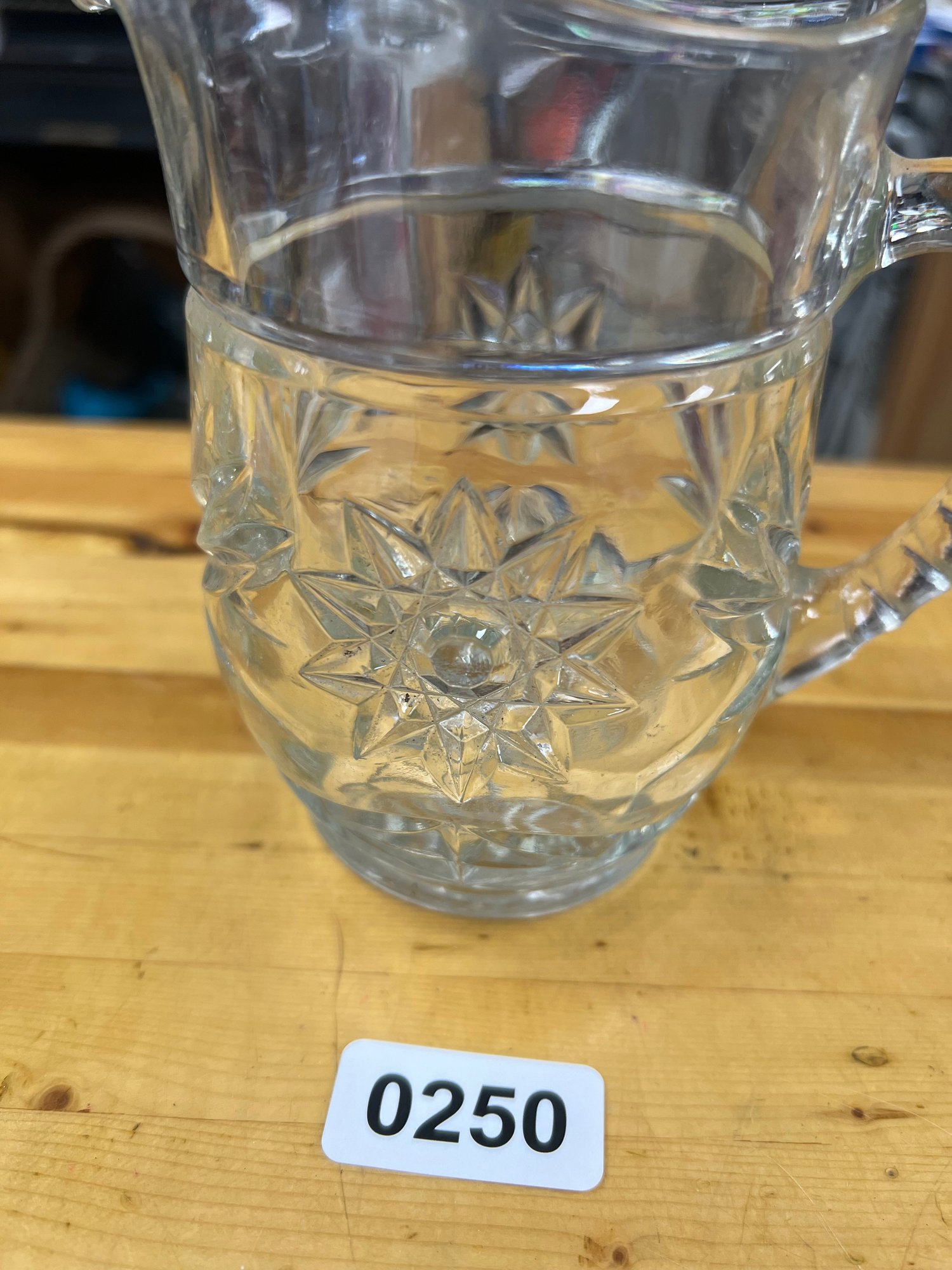 Vintage Cut Glass Pitcher – Elegant and timeless, this clear glass pitcher features intricate cut designs that catch the light beautifully. Perfect for serving drinks or displaying as a decorative centerpiece.