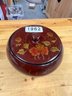 Vintage Floral Lacquer Round Box – A beautifully hand-painted piece with intricate floral detailing. Perfect for storing small treasures, jewelry, or simply adding a touch of elegance to your décor.
