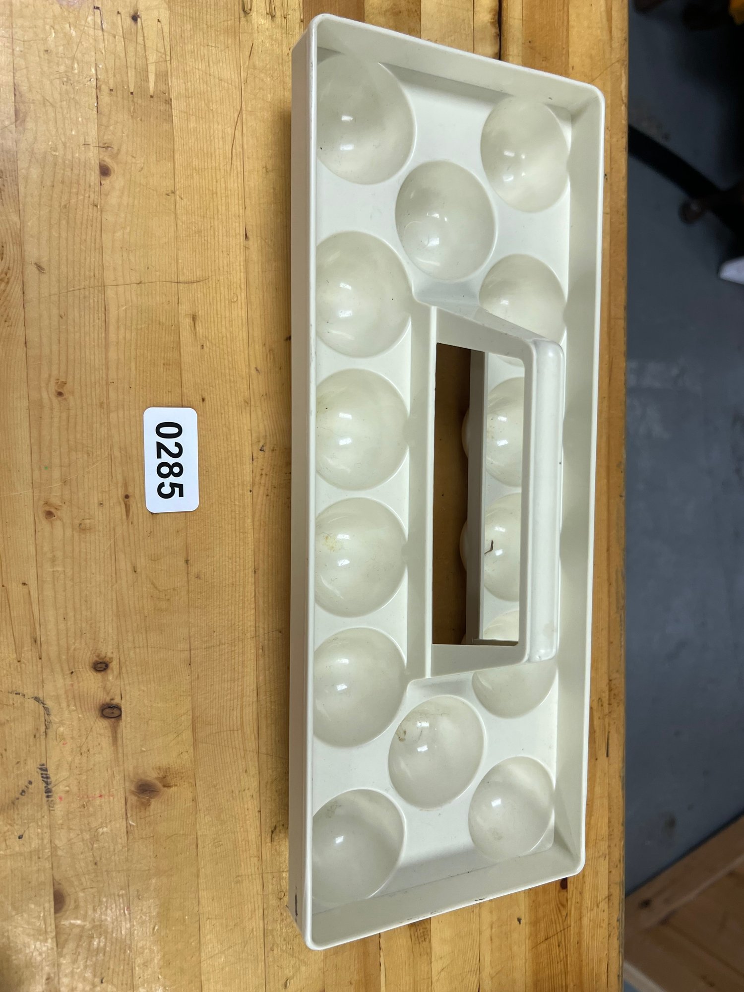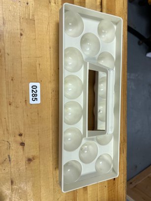 Vintage Heavy Plastic Egg Tray with Handle – A sturdy and practical serving piece designed to hold eggs securely. Perfect for deviled eggs, picnics, or retro kitchen displays.