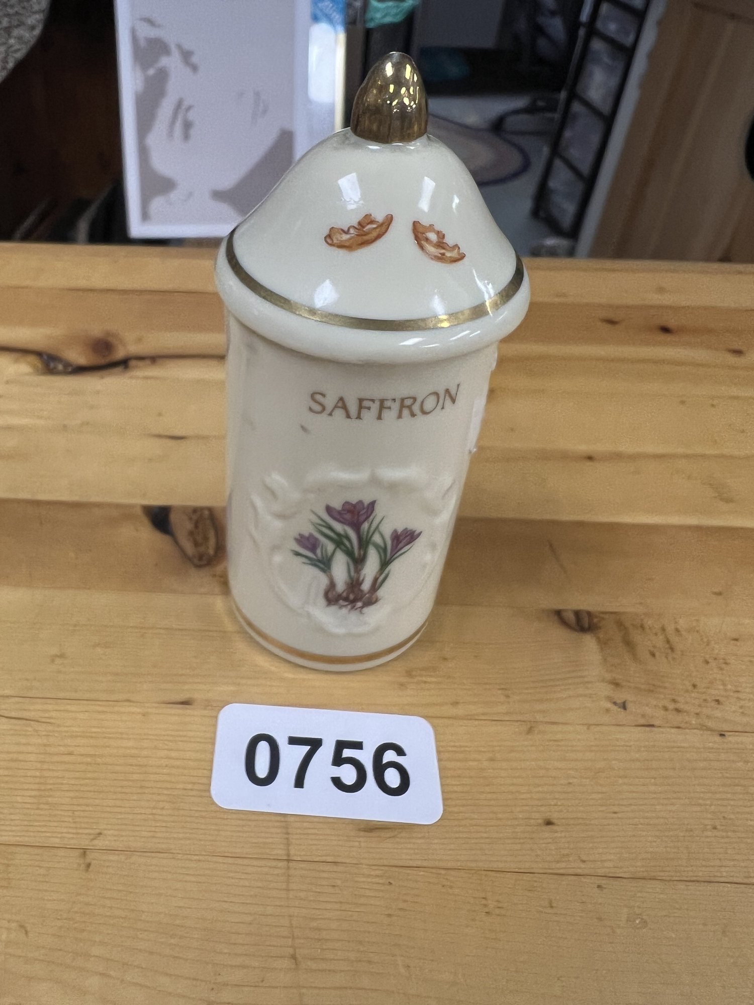 Elegant Lenox porcelain spice holder marked “Saffron” — collectible kitchen charm.