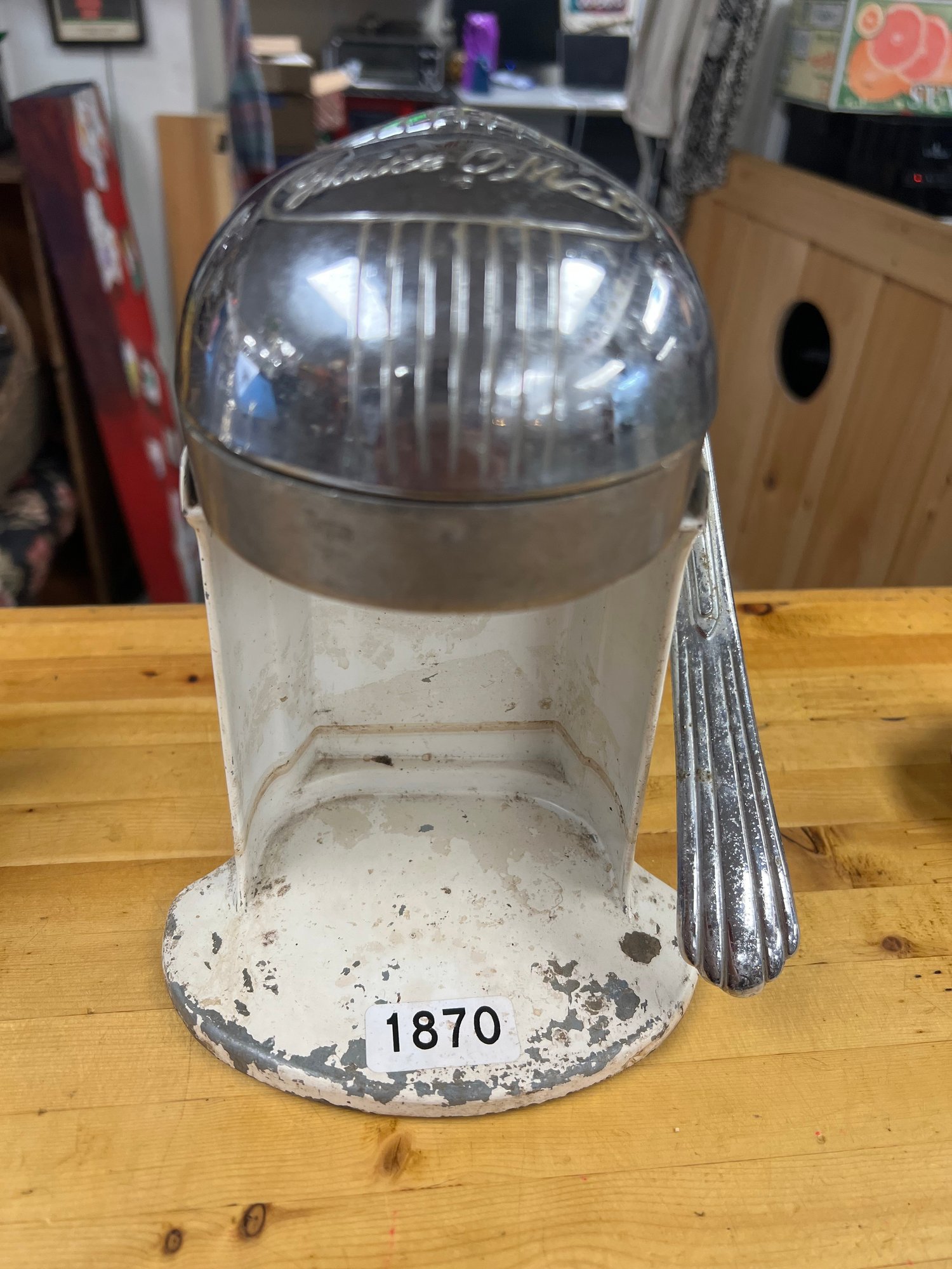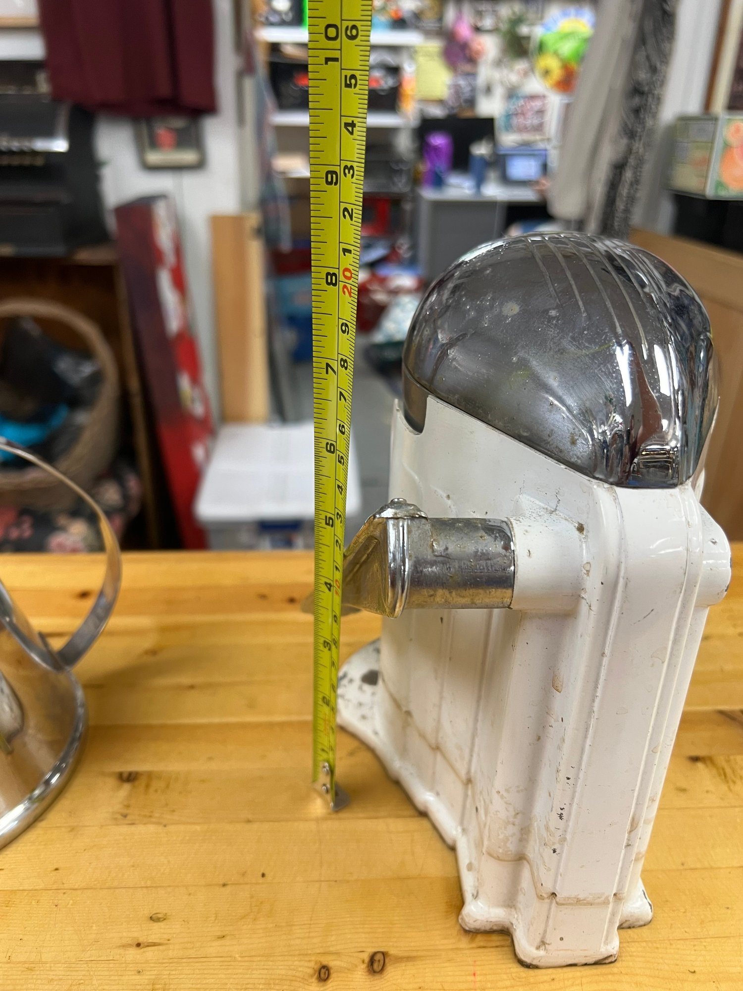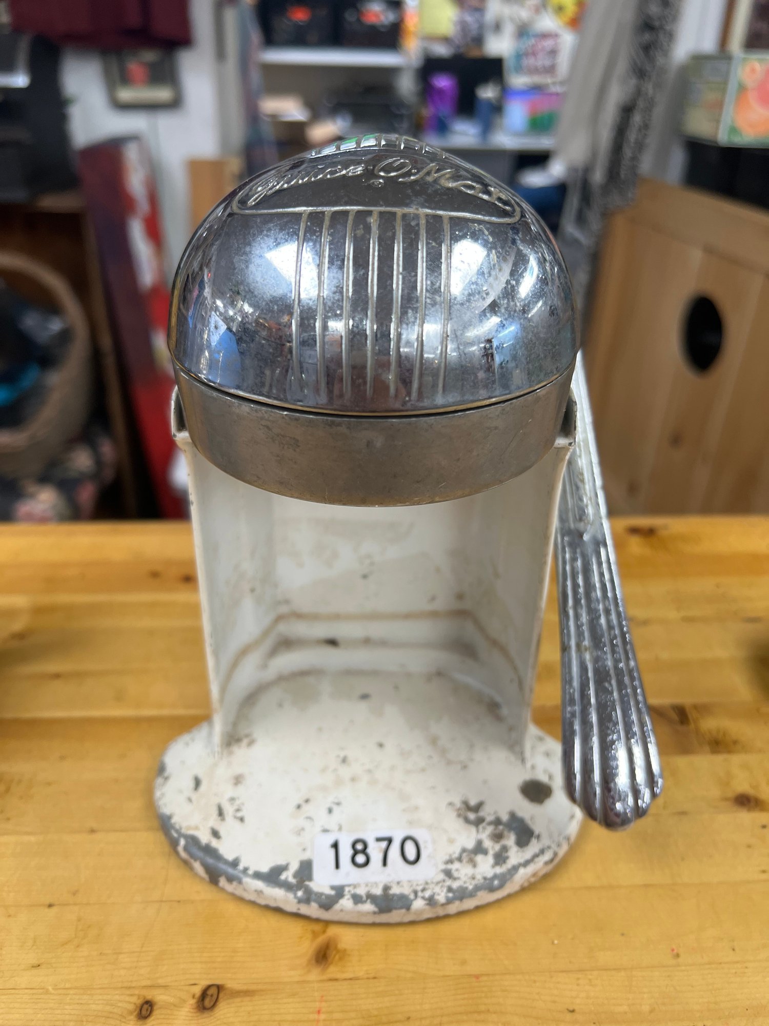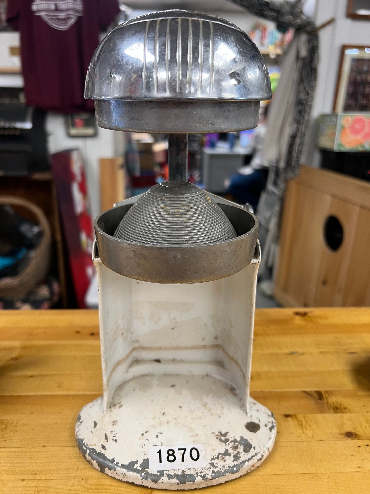 Vintage Metal Juice-O-Mat – A sturdy, retro countertop juicer built to last. Functional and decorative, it’s perfect for collectors of vintage kitchenware or anyone who loves timeless design with utility.