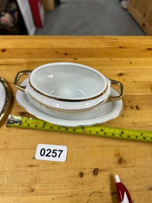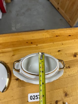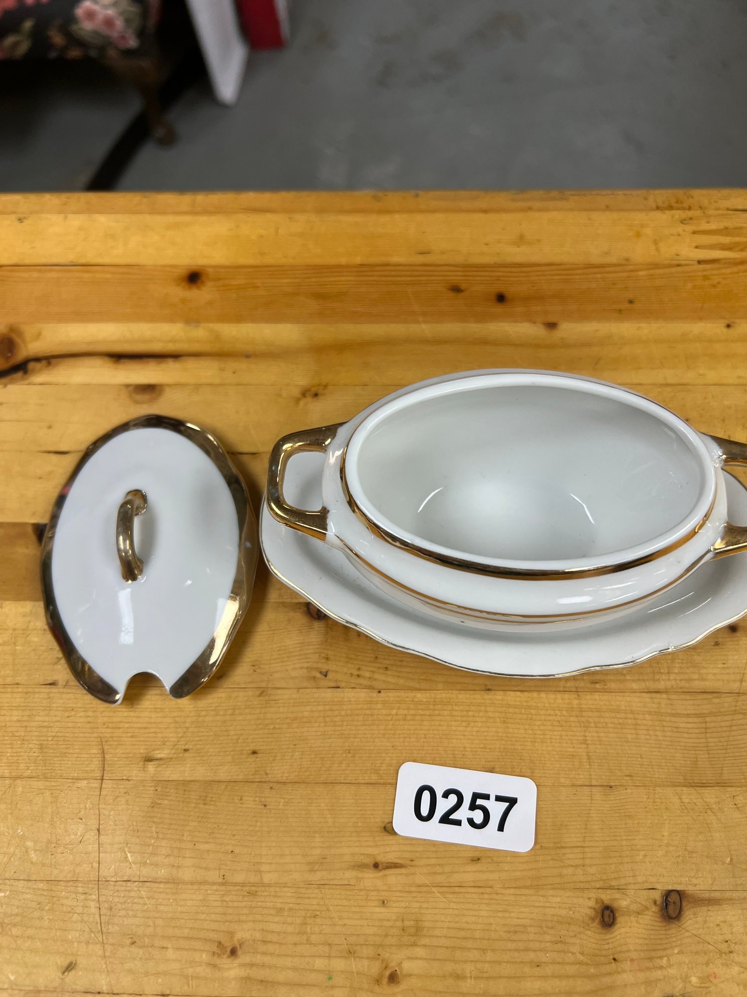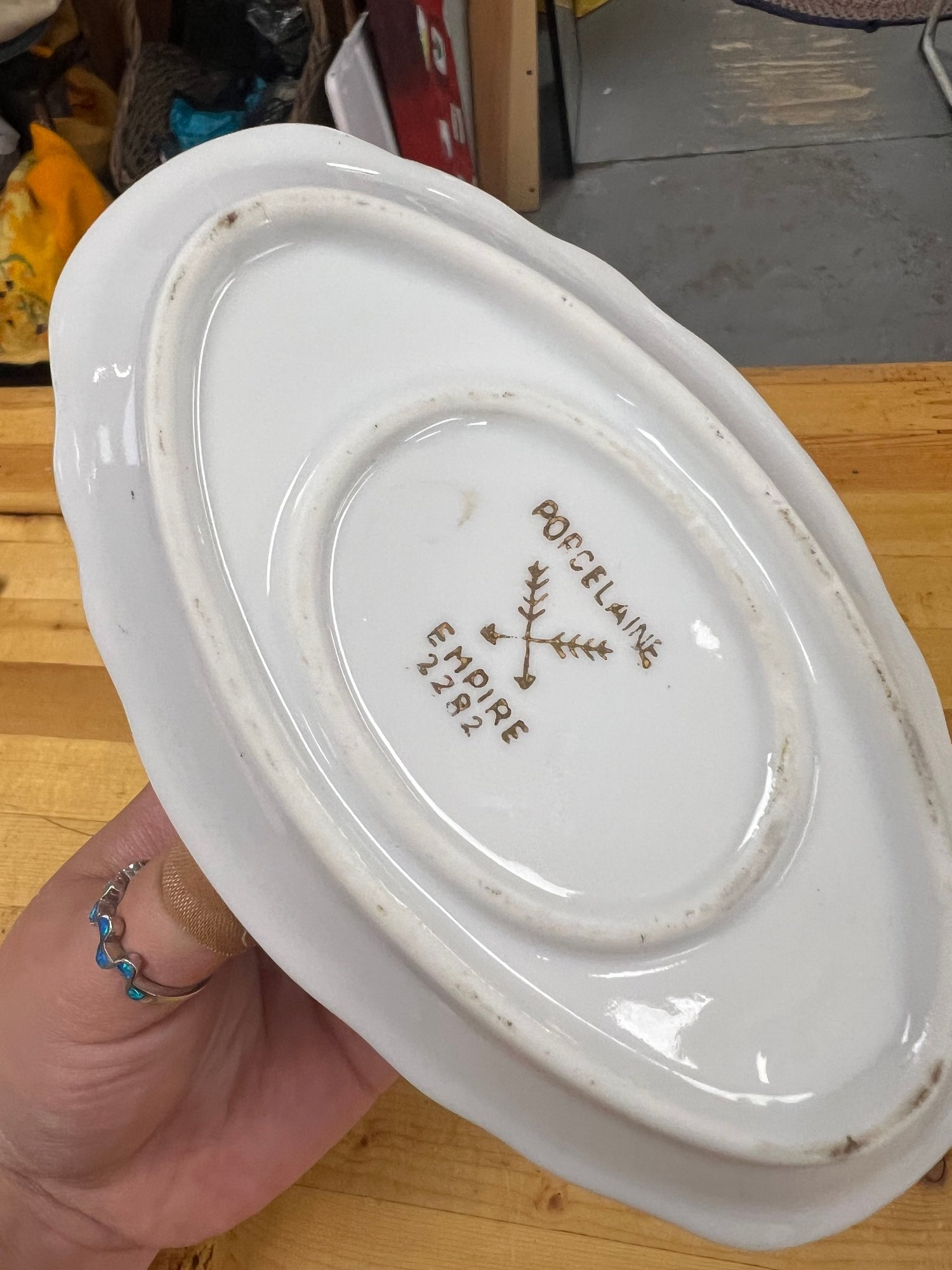 Vintage Porcelain Empire Dish with Cover & Gold Trim – Elegant and timeless, this covered dish features delicate porcelain craftsmanship highlighted with rich gold trim. Perfect for serving or display.