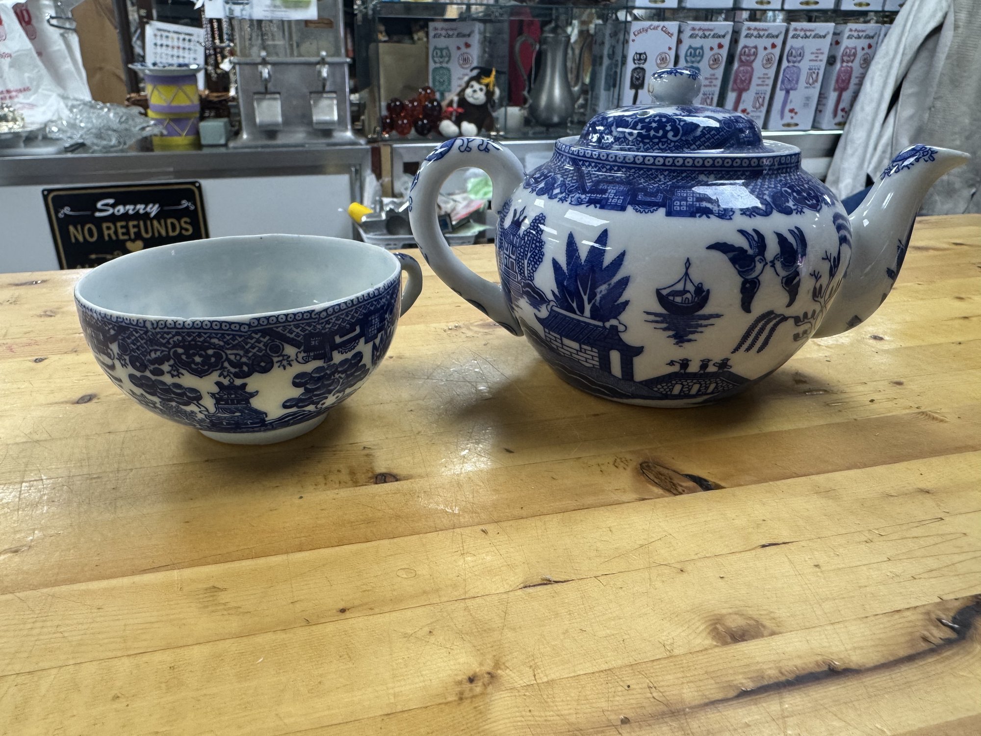 As pictured as seen. This super cute duo is perfect for a warm cup of tea for one. Easy included strainer for all the loose leaf blends.