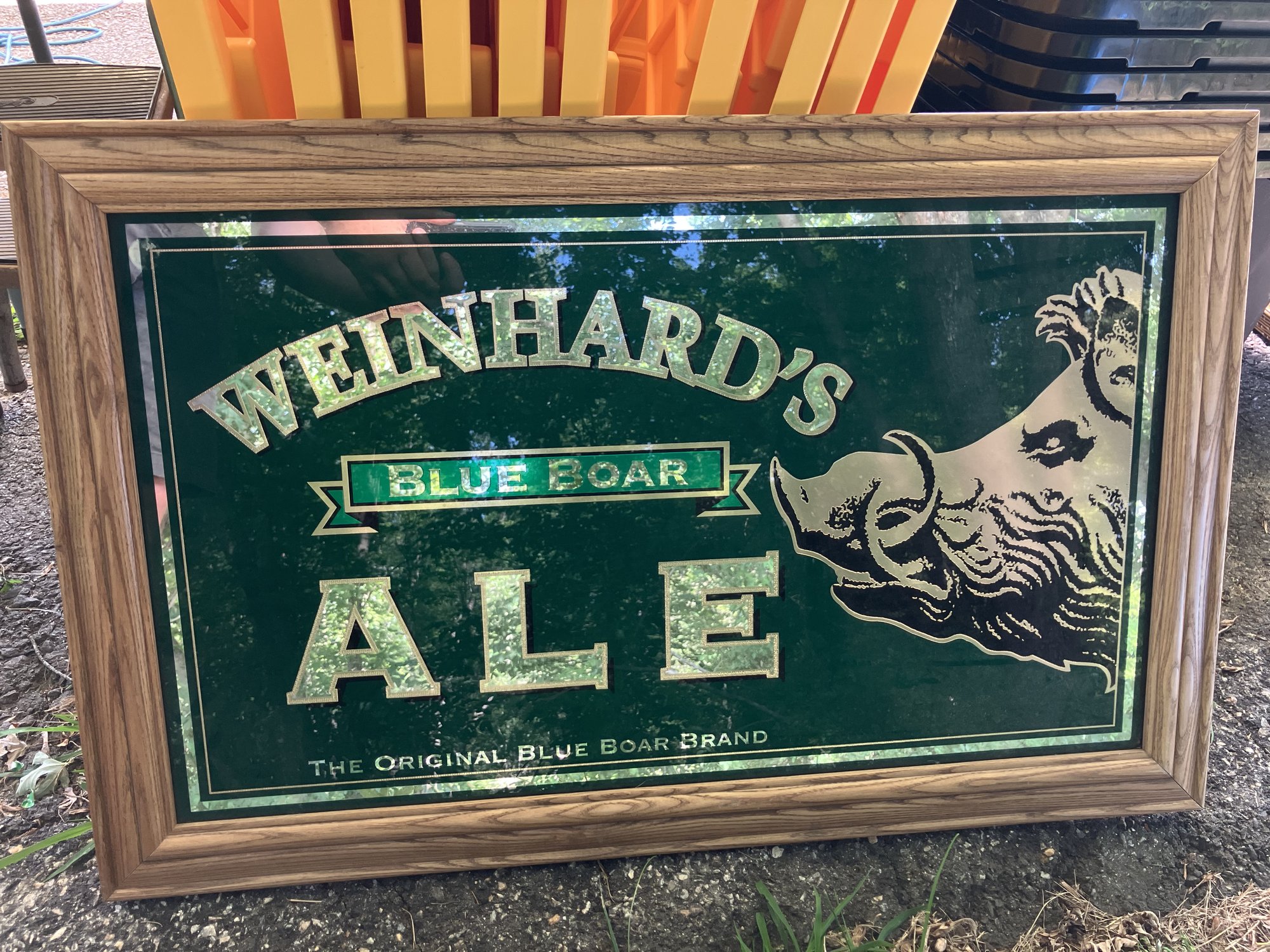 Up for auction is a classic Weinhards Blue Boar Ale mirror, perfect for any beer enthusiast or collector. This vintage piece features vibrant artwork and adds a touch of nostalgia to any bar or man cave. Please review the provided photos for condition details, and don’t miss your chance to own this unique item!