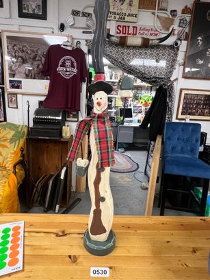This cheerful wooden snowman is ready to bring winter joy to your holiday décor. A festive handmade touch for mantels, shelves, or front entryways.