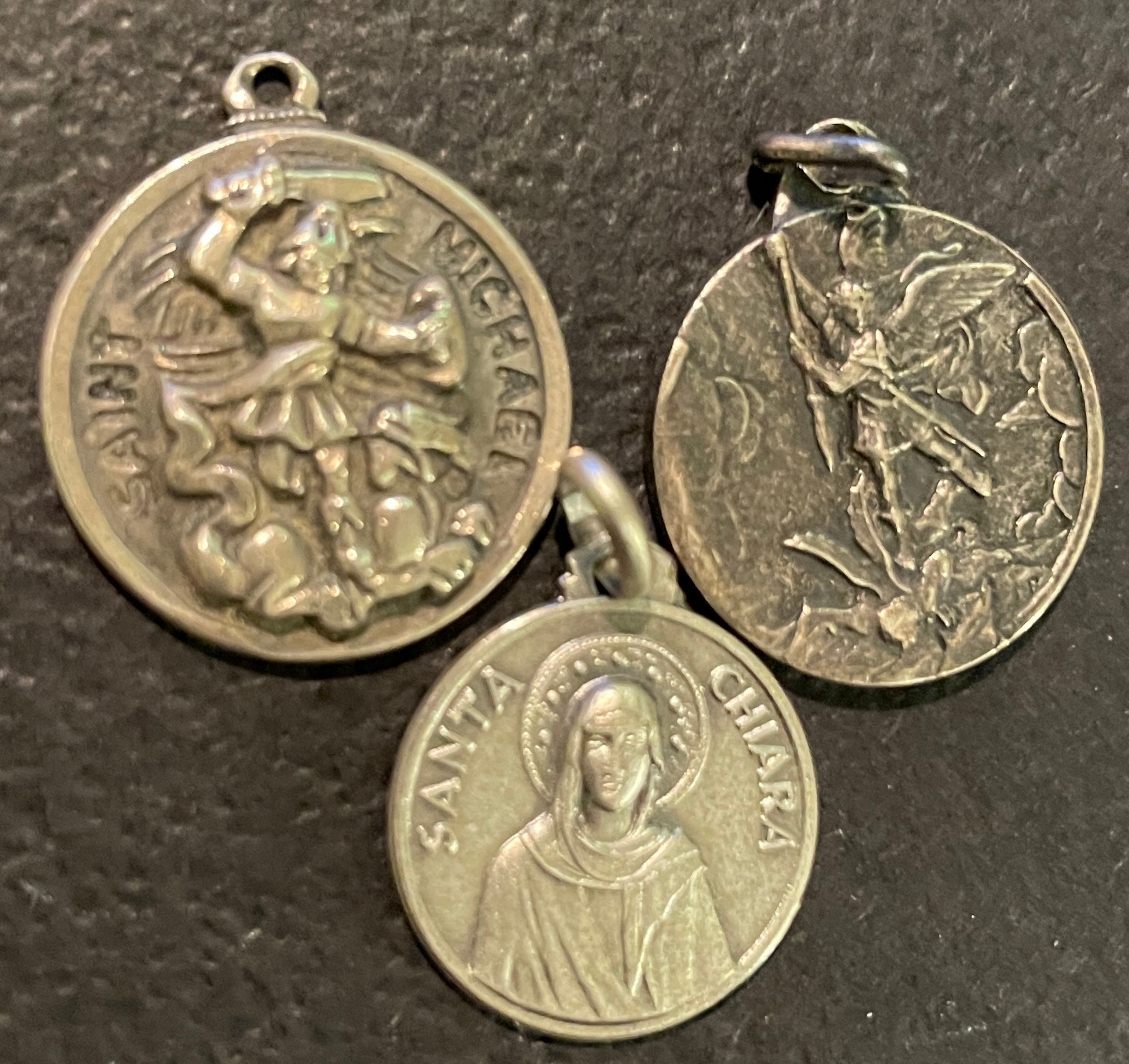 3 Religious Sterling Silver Pendants: 2 Saint Michael the Archangel & Santa Chiara