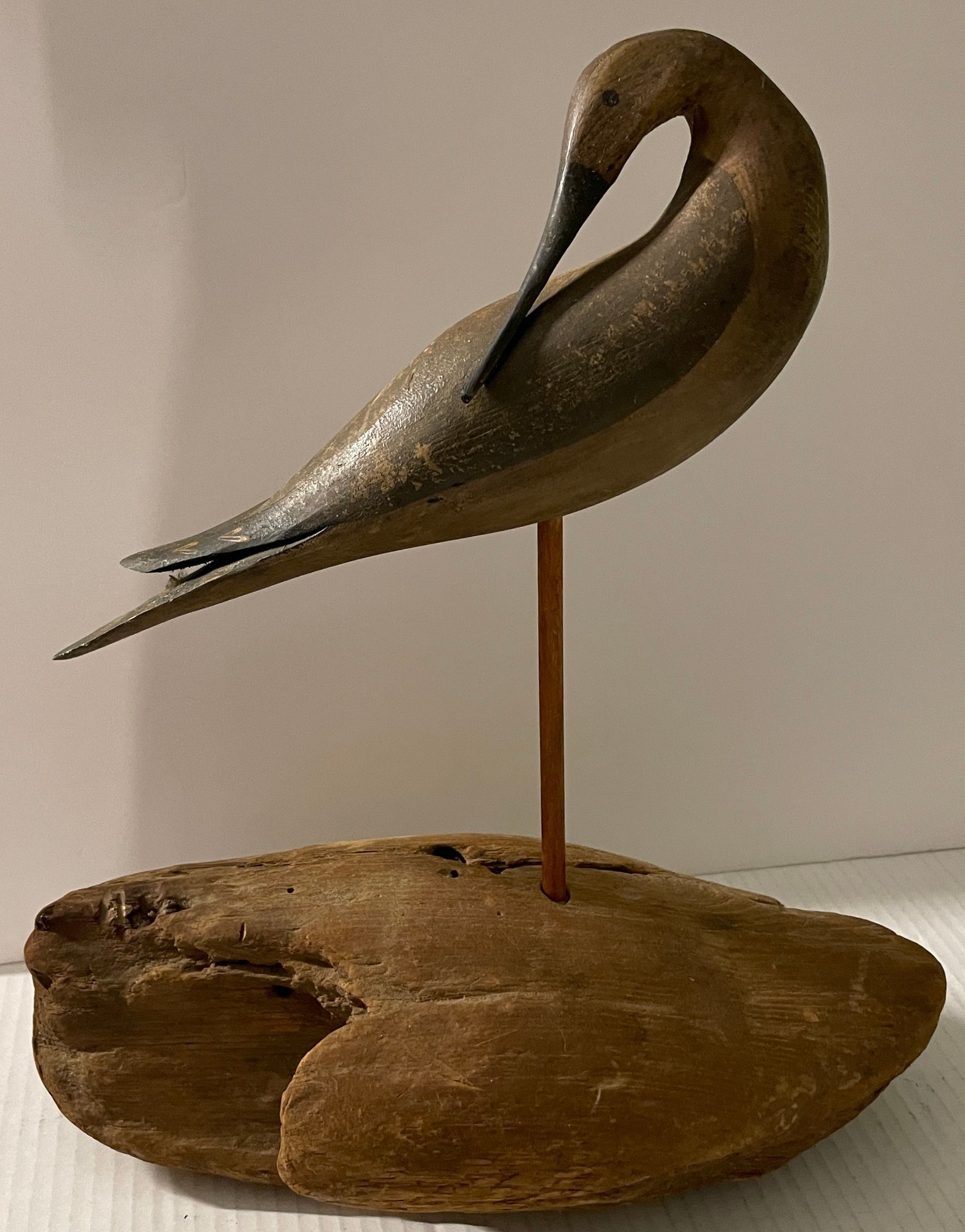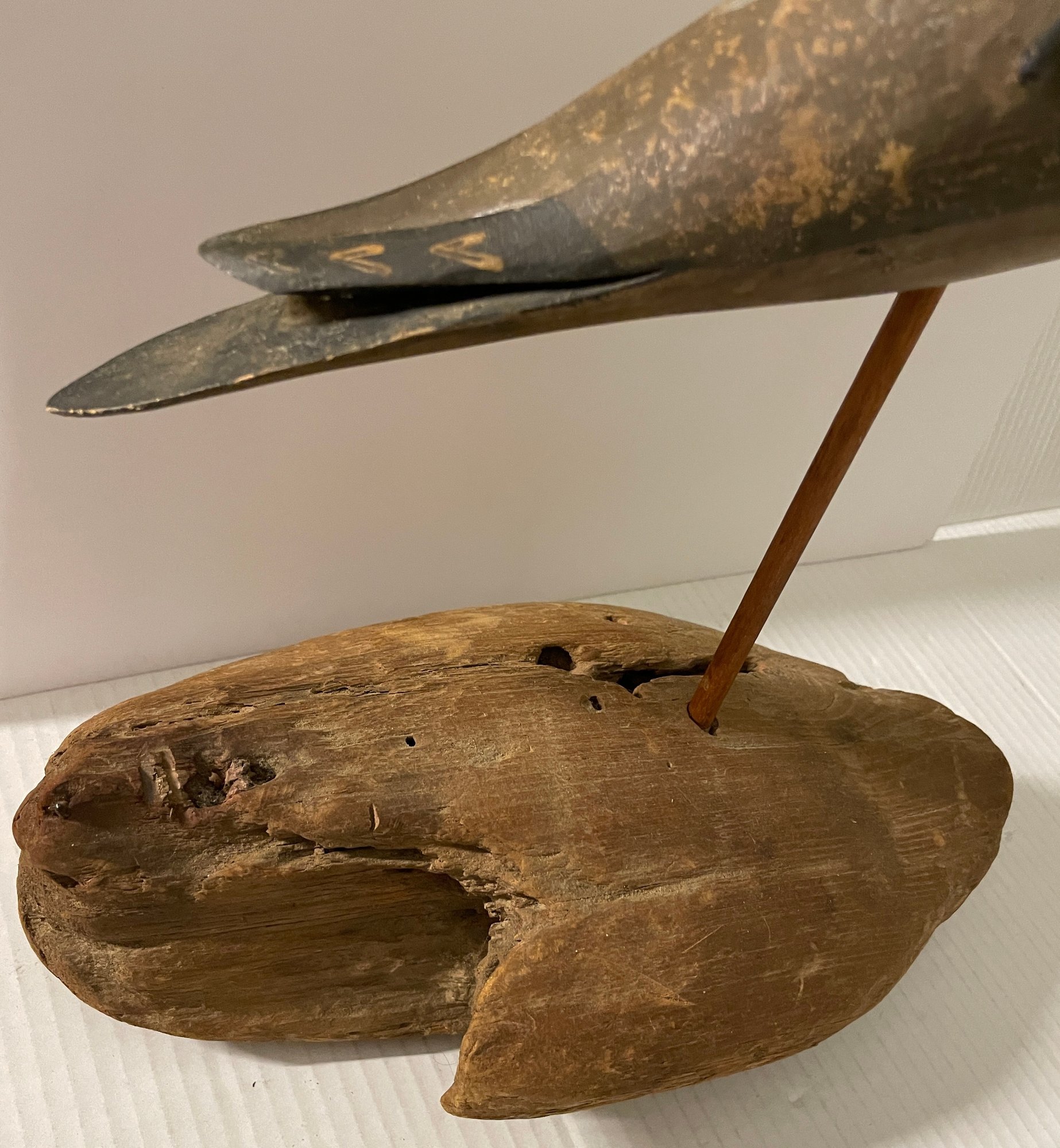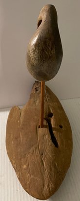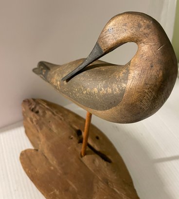 Bruce Bieber (Cape May, NJ) Preening Yellowlegs Shorebird Decoy on Driftwood Base