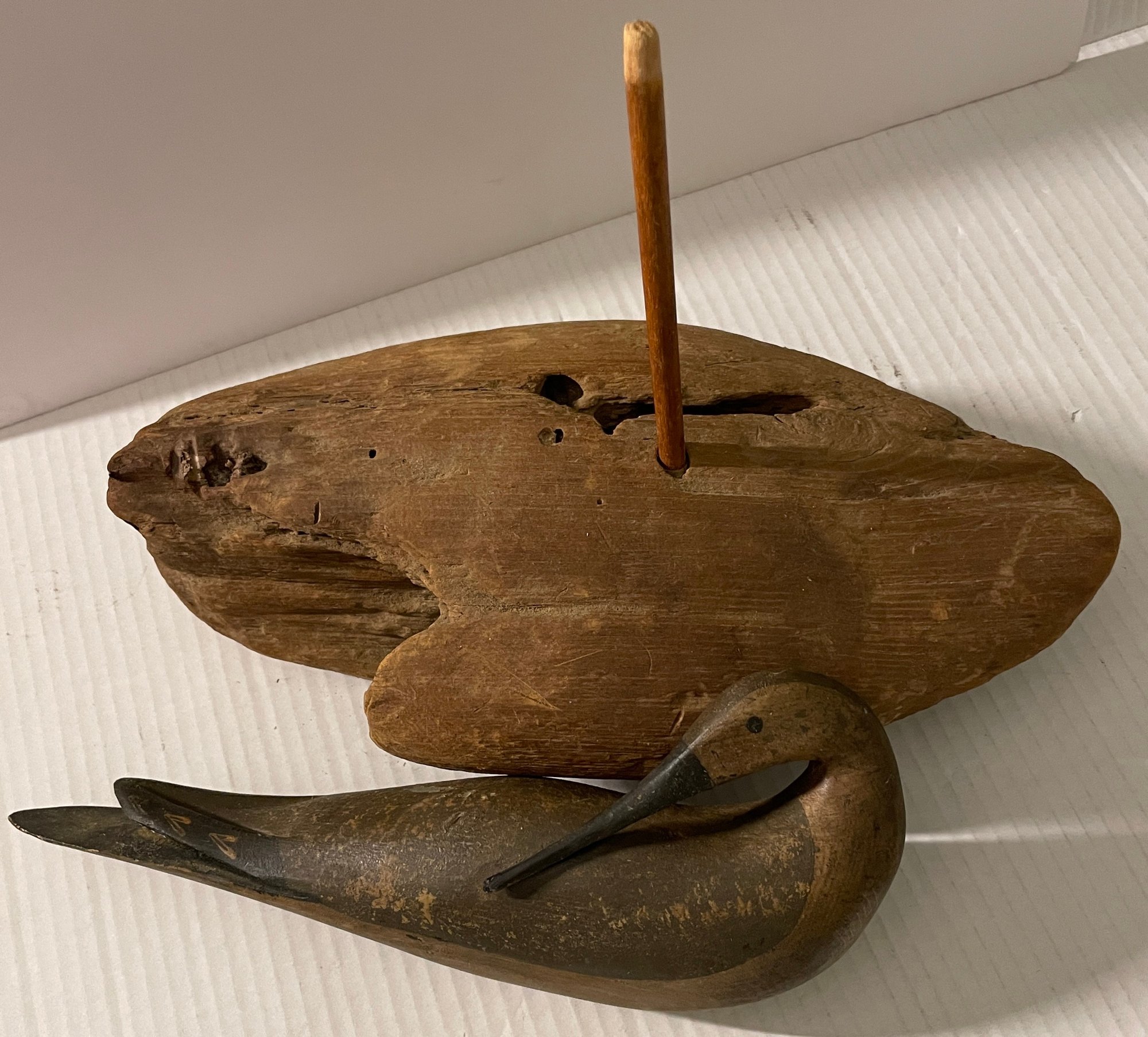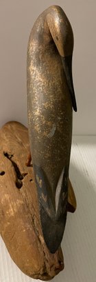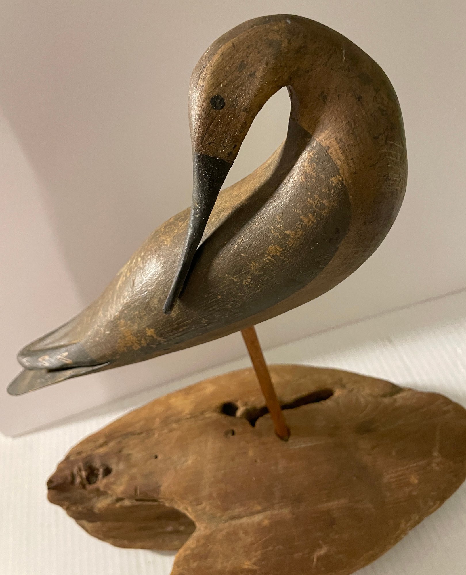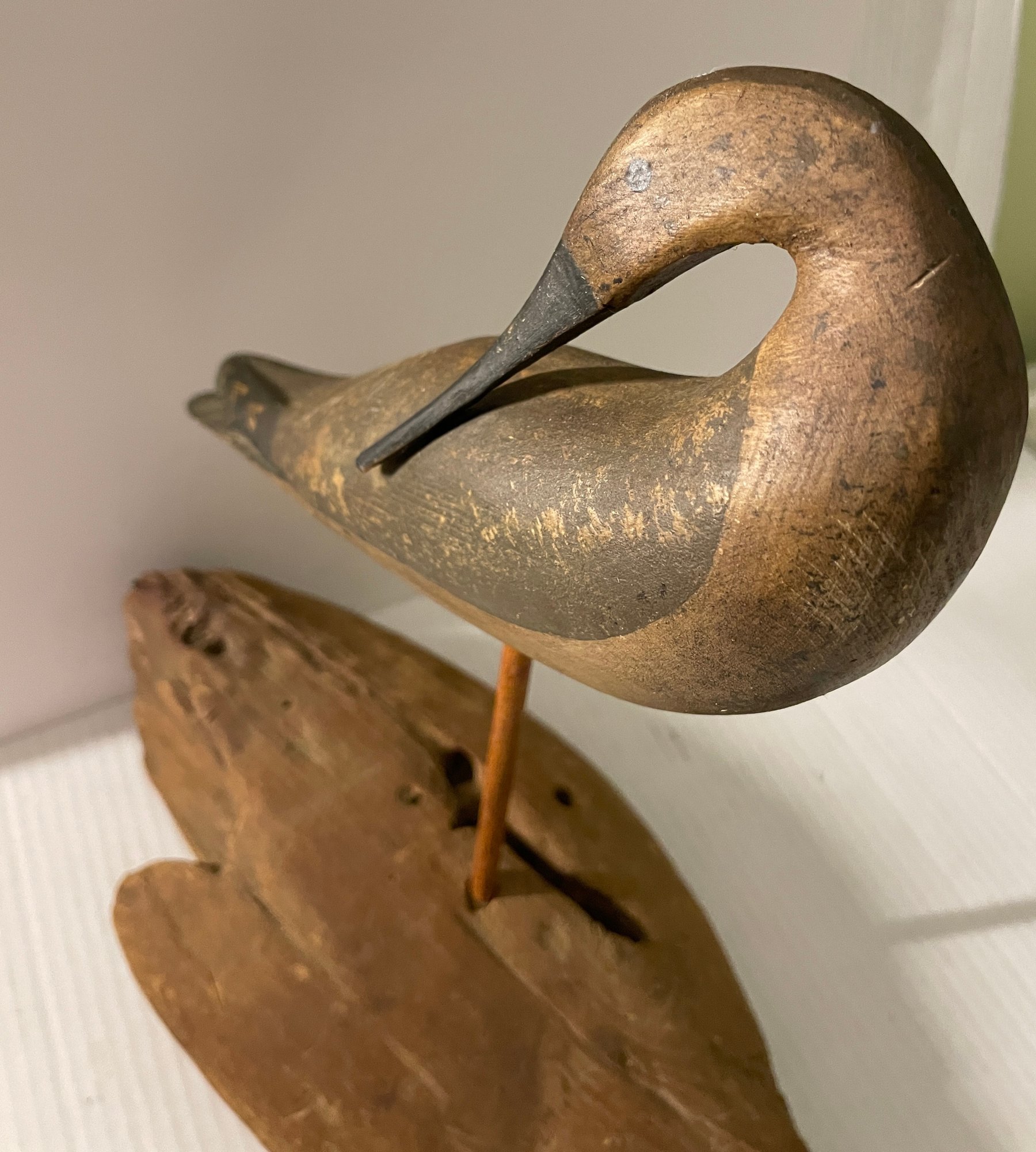 Bruce Bieber (Cape May, NJ) Preening Yellowlegs Shorebird Decoy on Driftwood Base