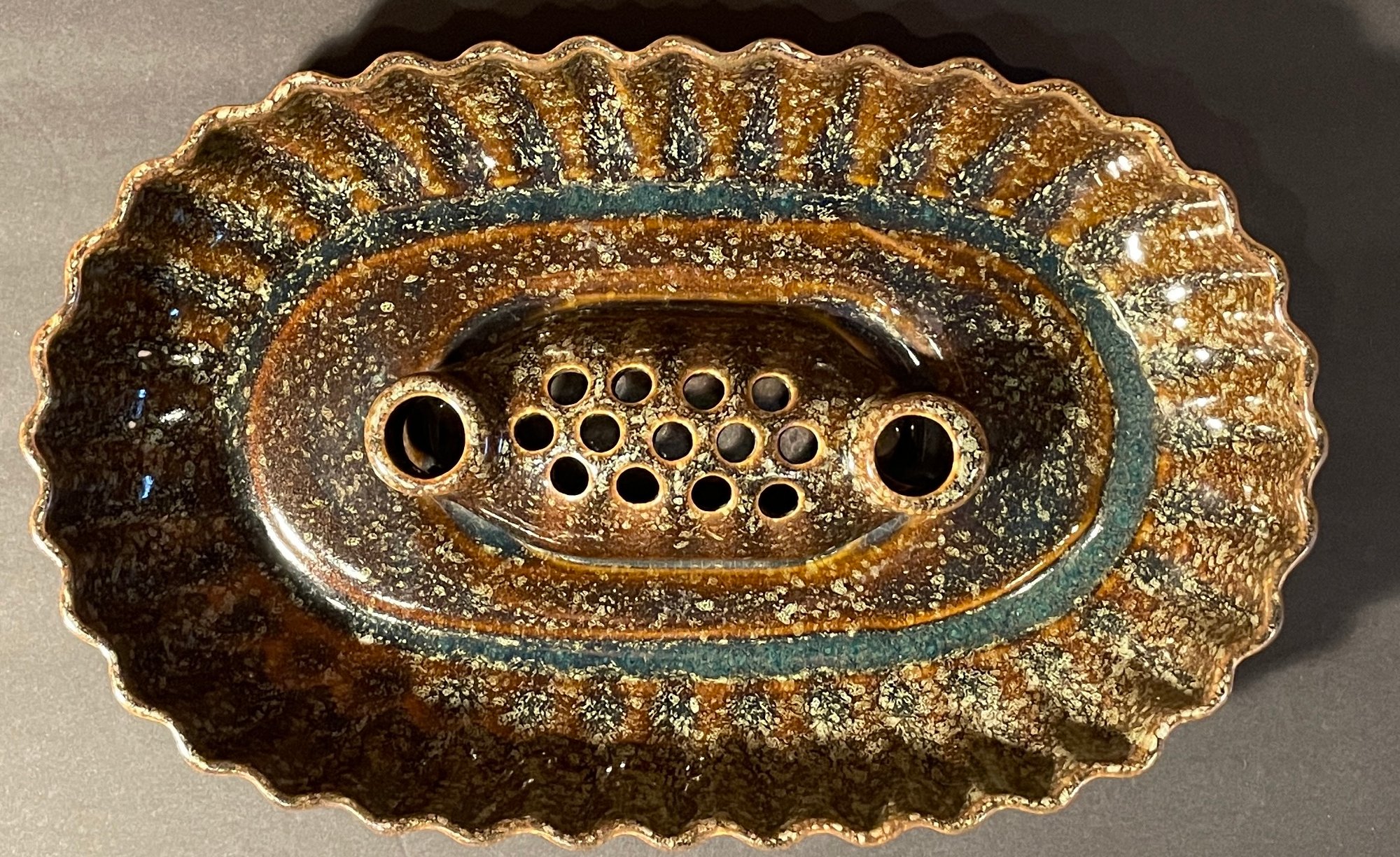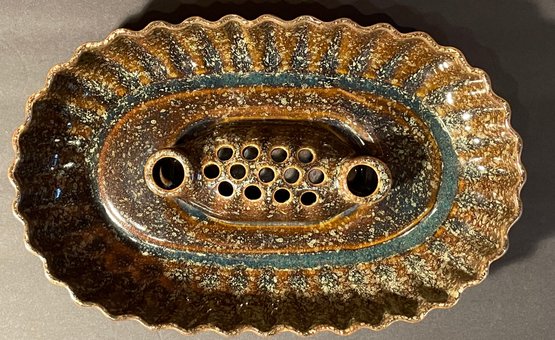 Brush McCoy USA Centerpiece - "Frog" Serving Dish w/Candle Holder & 13 hole Flower Holder 14"x9"