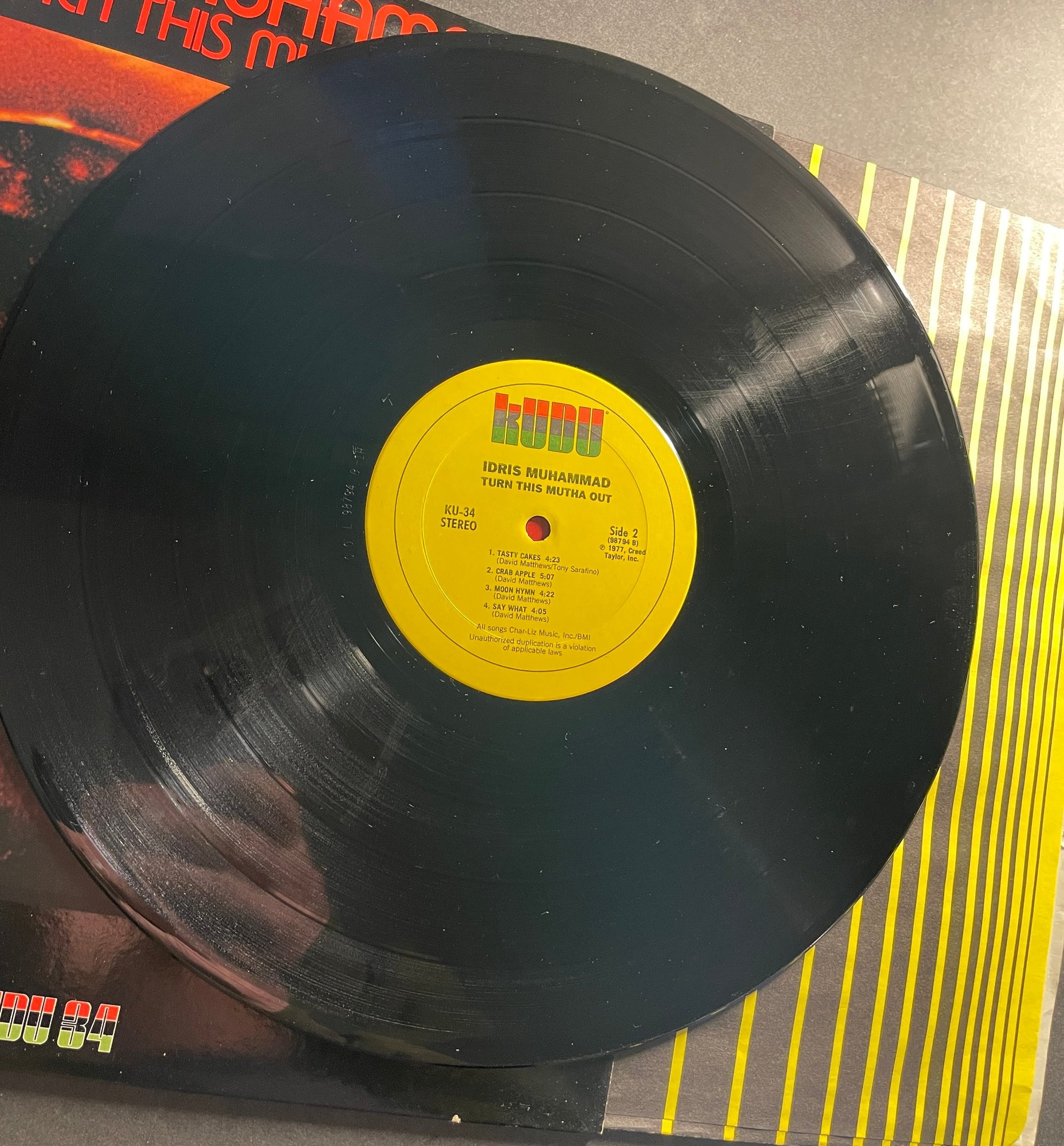 Idris Muhammad Turn This Mutha Out Kudu 84 NM shrink wrap Wilbur Bascomb NM. Media appears glossy, lightly played and no detectable scratches. Would fall in the NM-VG+ range. The pictures are always our best description. Cover lies between VG and VG+; quite presentable with some wear spots as pictured.