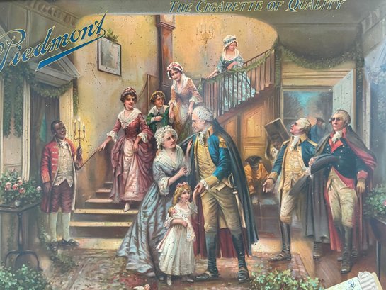 Piedmont Cigarettes Tin Advertising Sign, "Washington's Return to Mount Vernon"