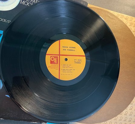 Joe Farrell - Moon Germs LP - CTI 6023 - Herbie Hancock, Stan Clarke, Jack Dejohnette. Media appears glossy, lightly played and no detectable scratches. Would fall in the NM-VG+ range. The pictures are always our best description. Cover is nice and presentable and some wear etc. as pictured.