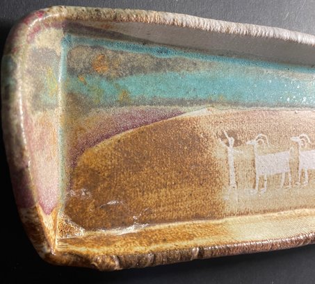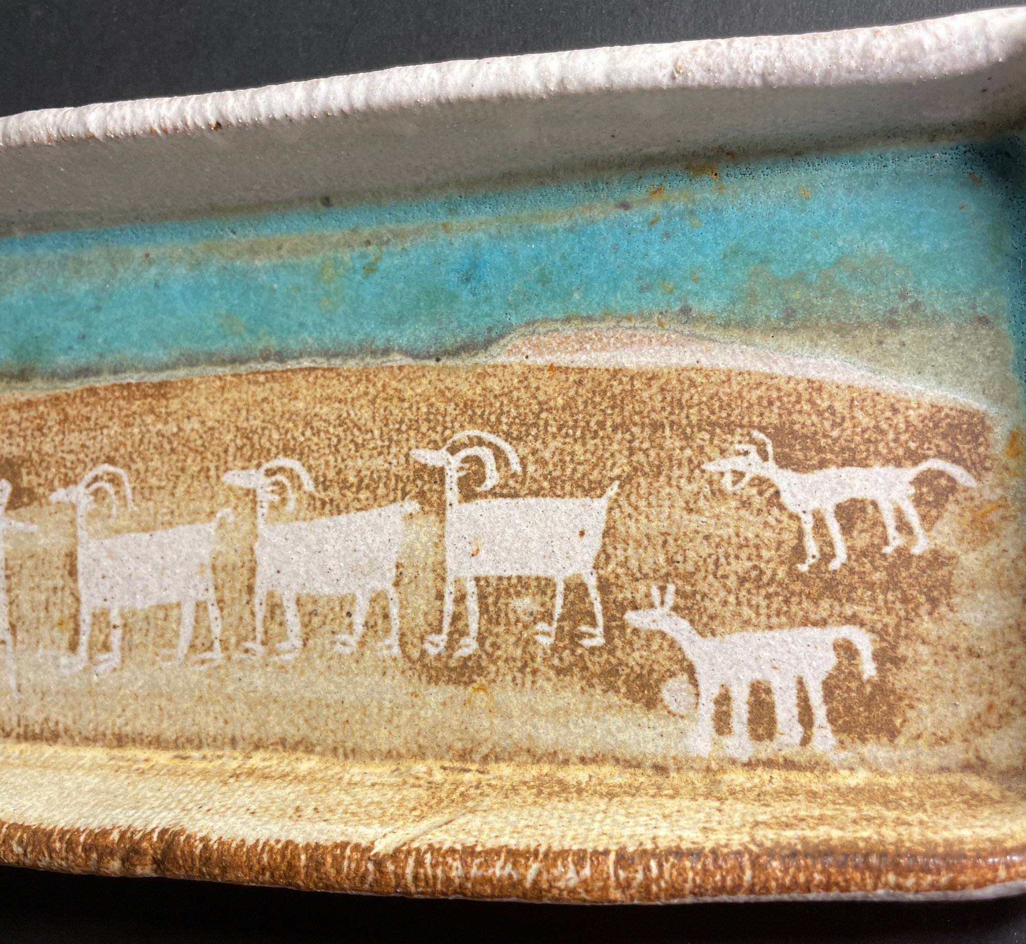 Judy Mohr, Tucson, Arizona Stoneware Pottery Tray Native American Petroglyphs - 4.5" x 12"