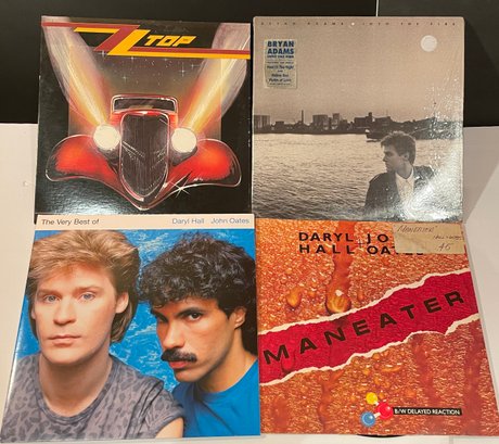 Lot of 4 Vinyl Records By ZZ TOP, HALL & OATES, BRYAN ADAMS