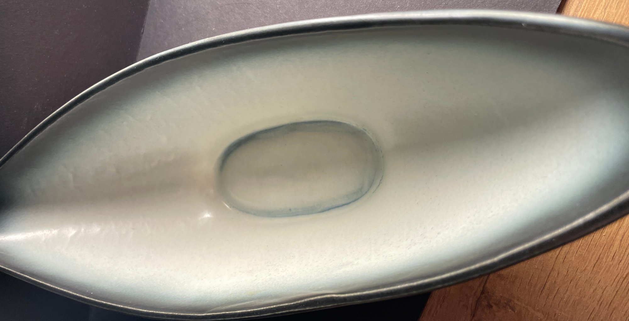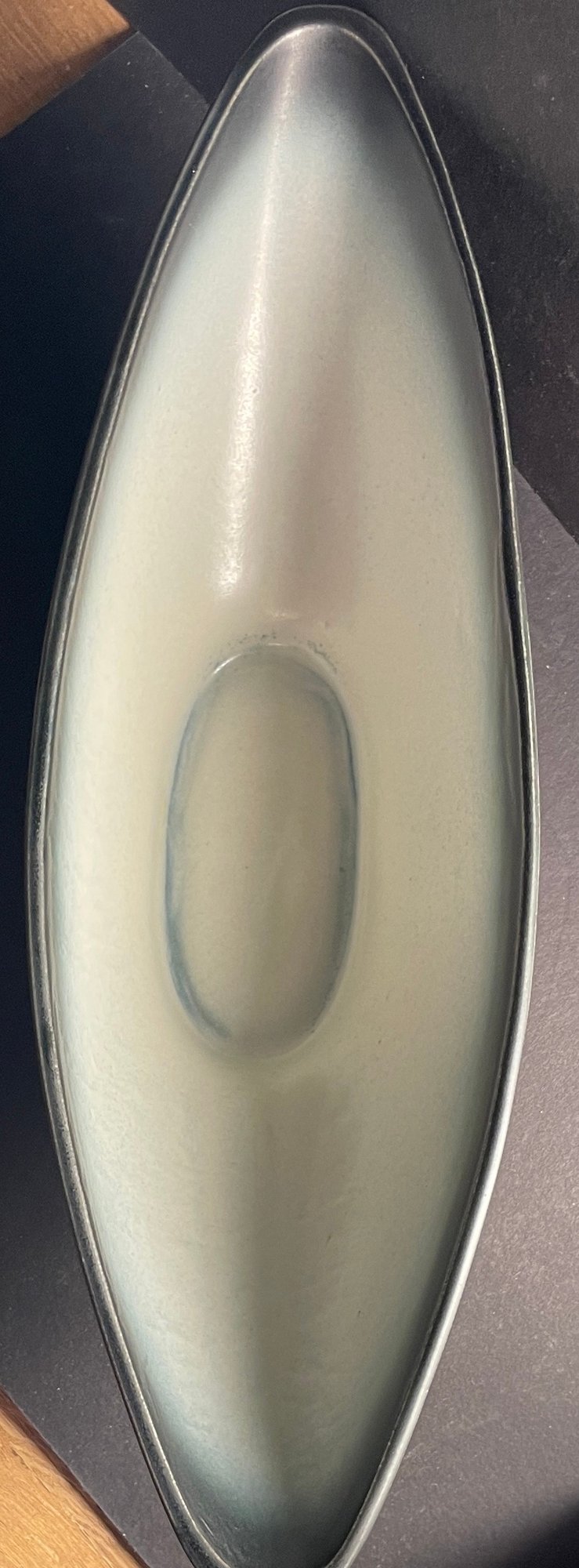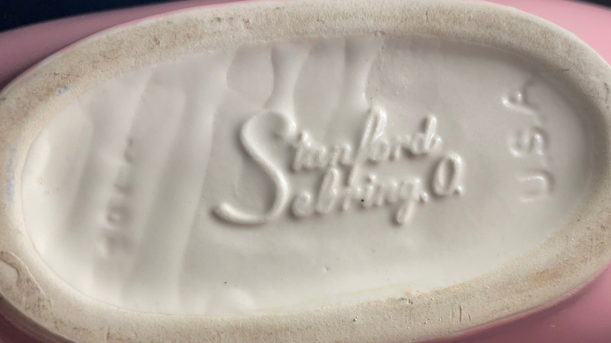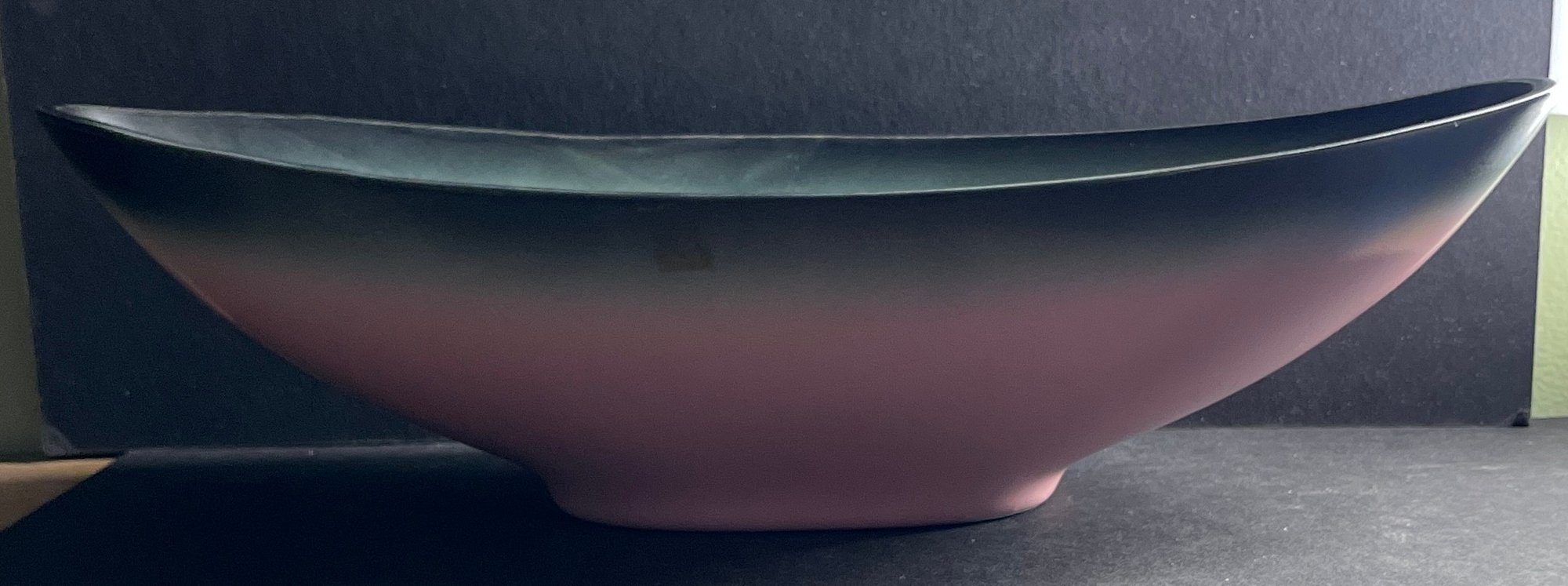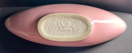 MCM Stanford Sebring Pottery Atomic Canoe Shaped Console Centerpiece Pink & Blue Hues - 13"