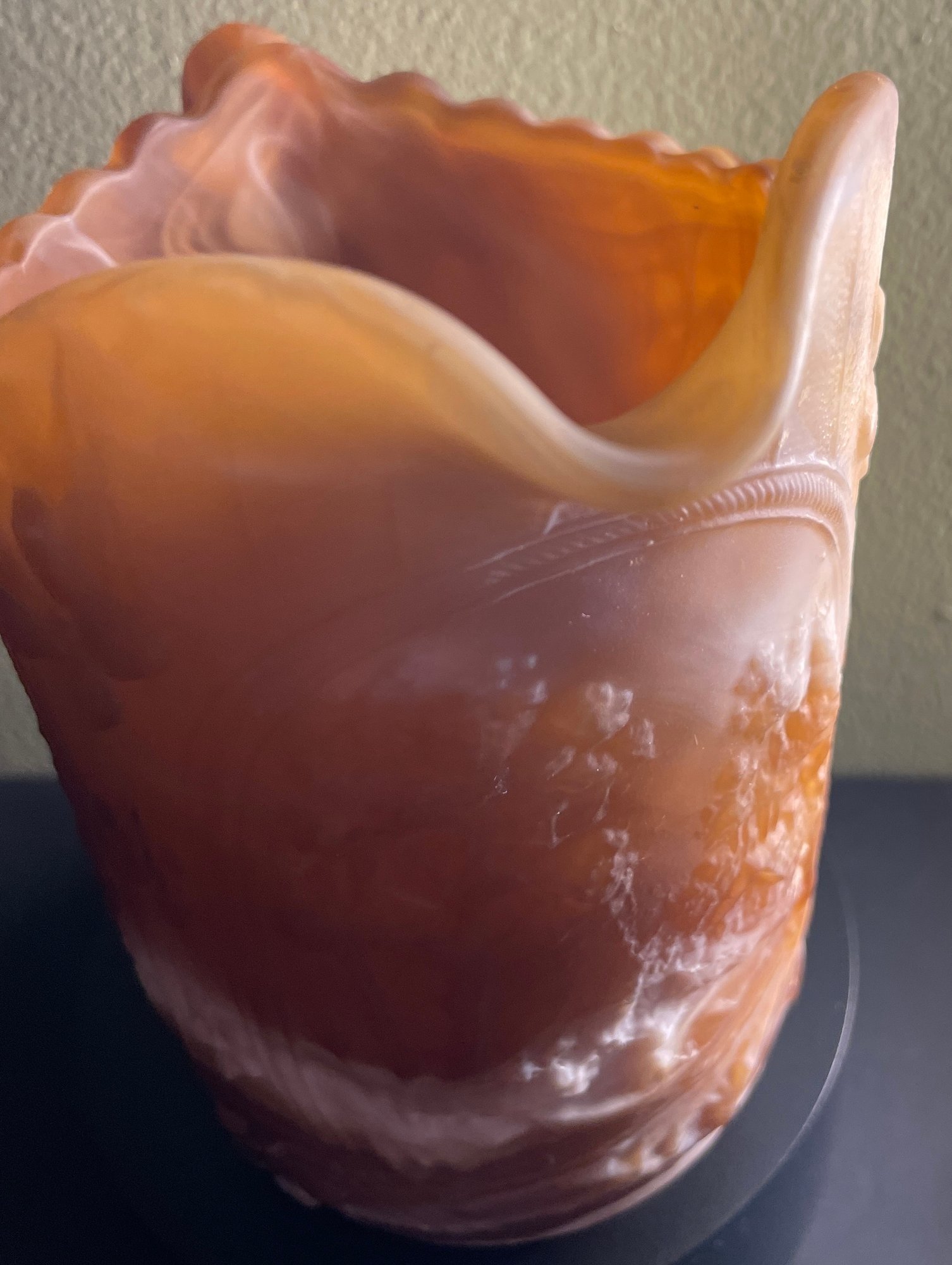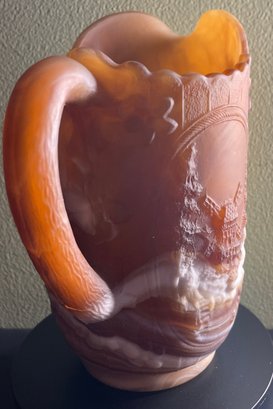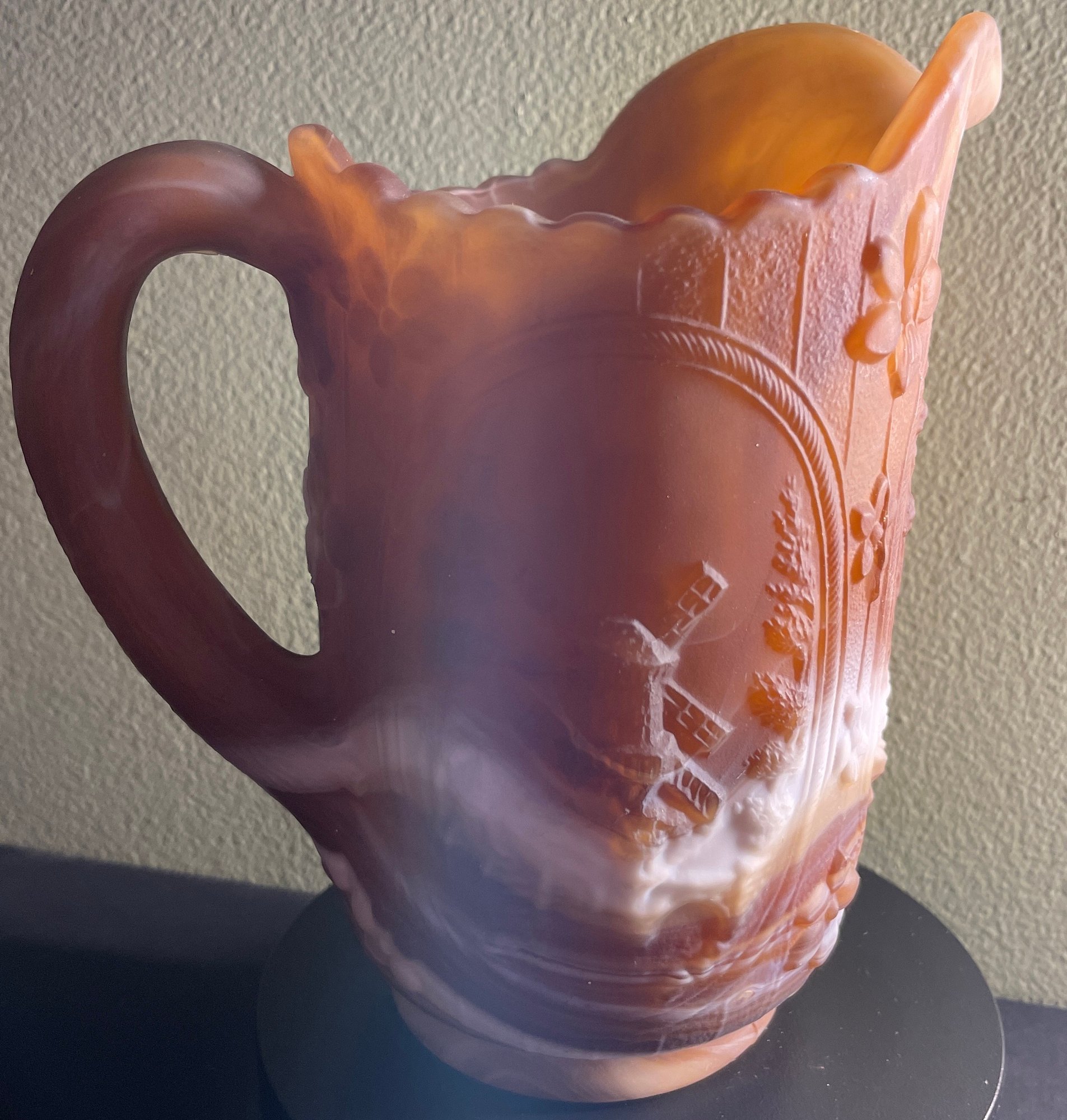 IMPERIAL Caramel Cream Chocolate Slag Glass Pitcher - Windmill 6.25"