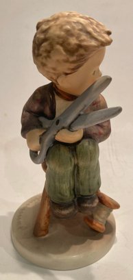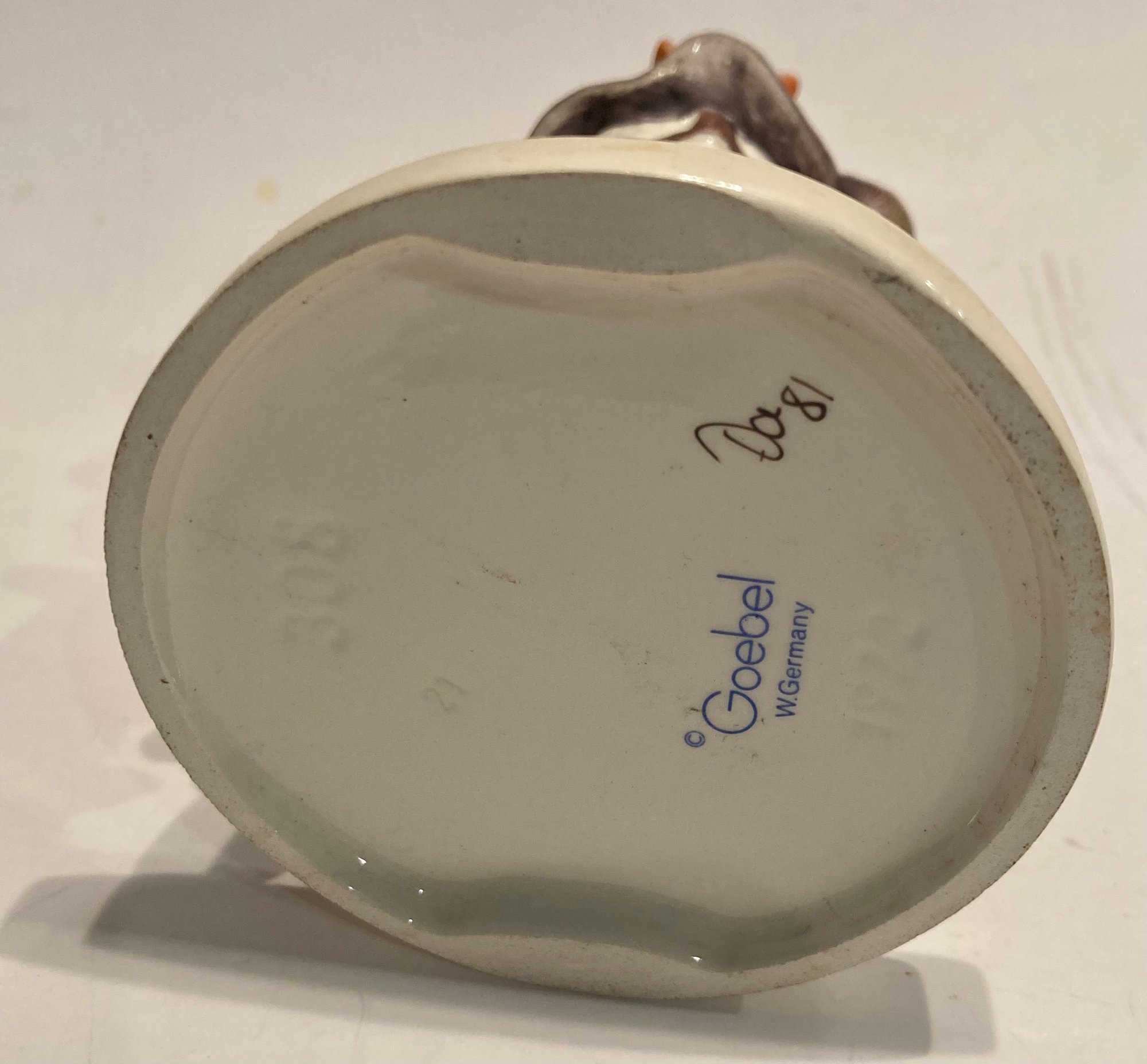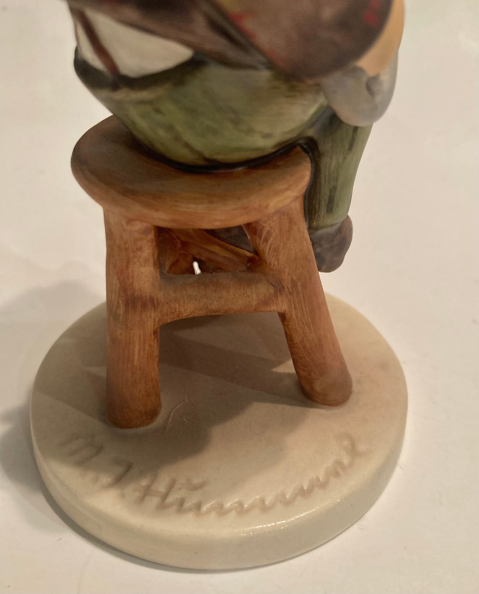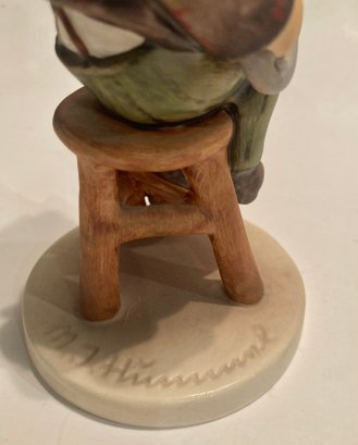 This Hummel manufactured by Goebel is titled “Little Tailor” and is inscribed with number 308. It depicts a young boy sitting on a stool holding a large pair of scissors. There is a spool of thread at his feet. It measures 5 3/4” tall. Thete are no chips or flaws.