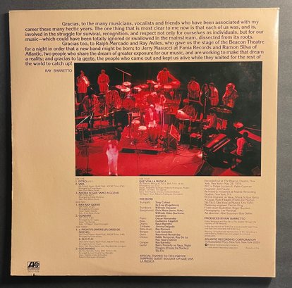 RAY BARRETTO Tomorrow: Barretto Live ATLANTIC 2XLP gatefold Jazz lps. Media appears glossy, lightly played and no detectable scratches. Would fall in the NM-VG+ range. The pictures are always our best description. Cover lies between VG and VG+; quite presentable with some wear and cutout as pictured.