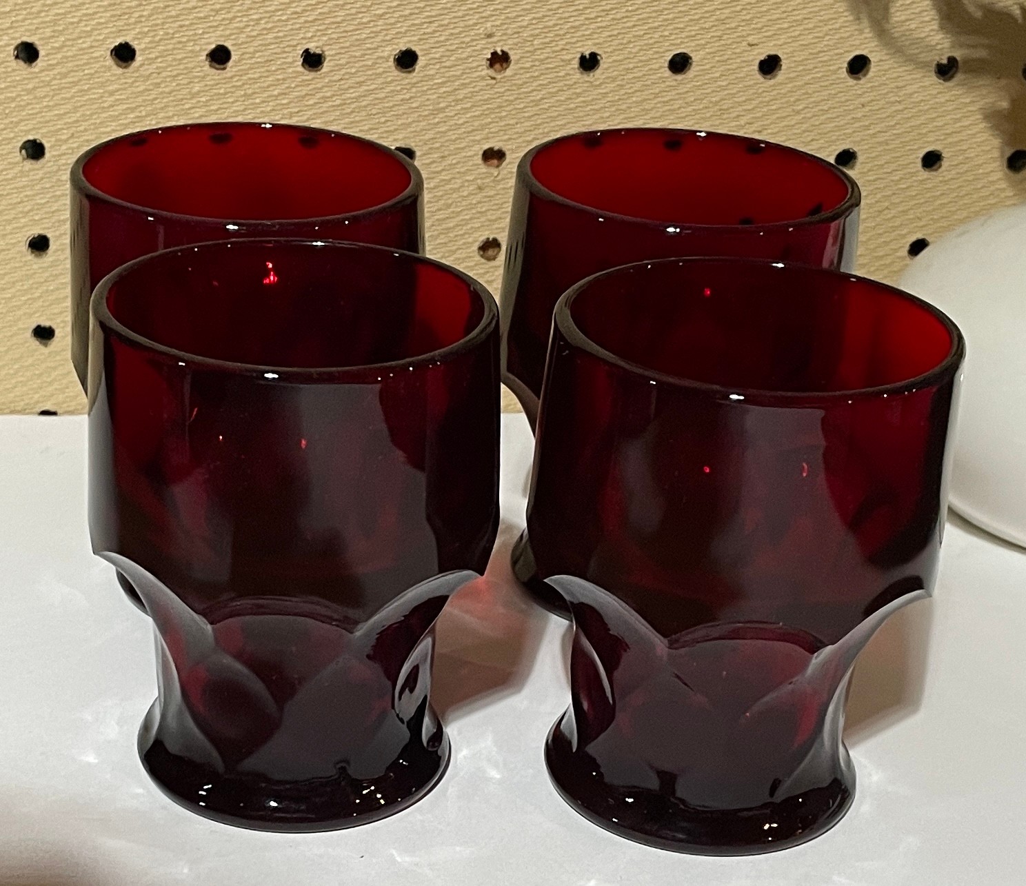 Set of 4 Ruby Red Georgian Honeycomb Viking Tumblers 4"