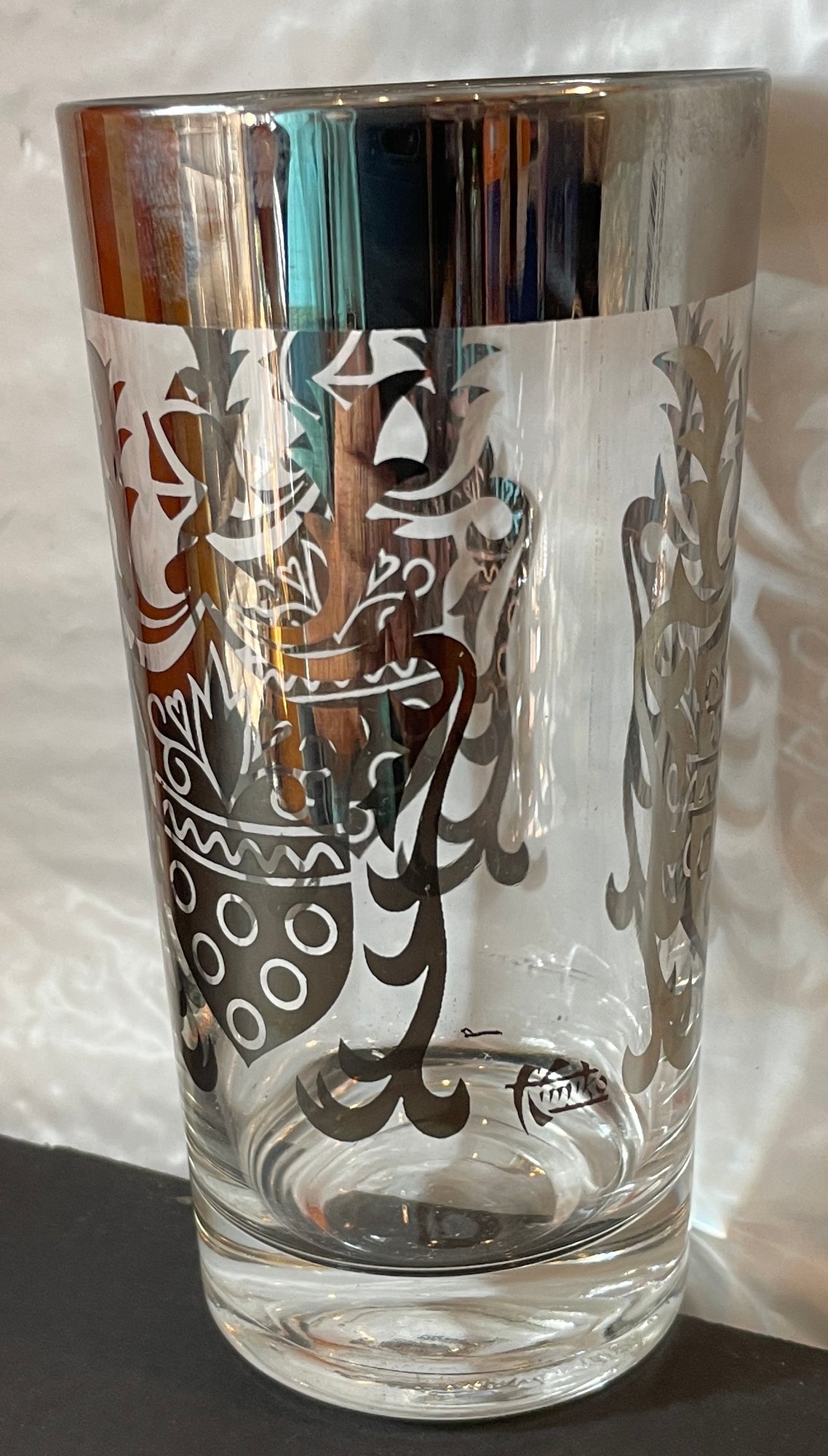 Set Of 8 Mid-Century KIMIKO Knight Shield Highball Set with Caddy and original Cardboard