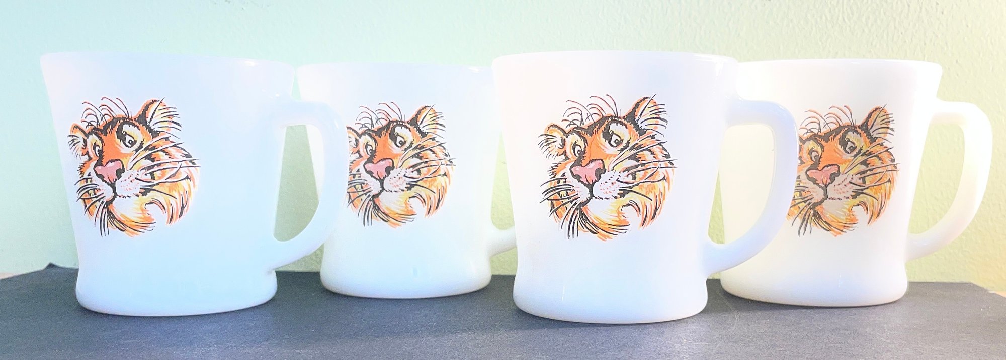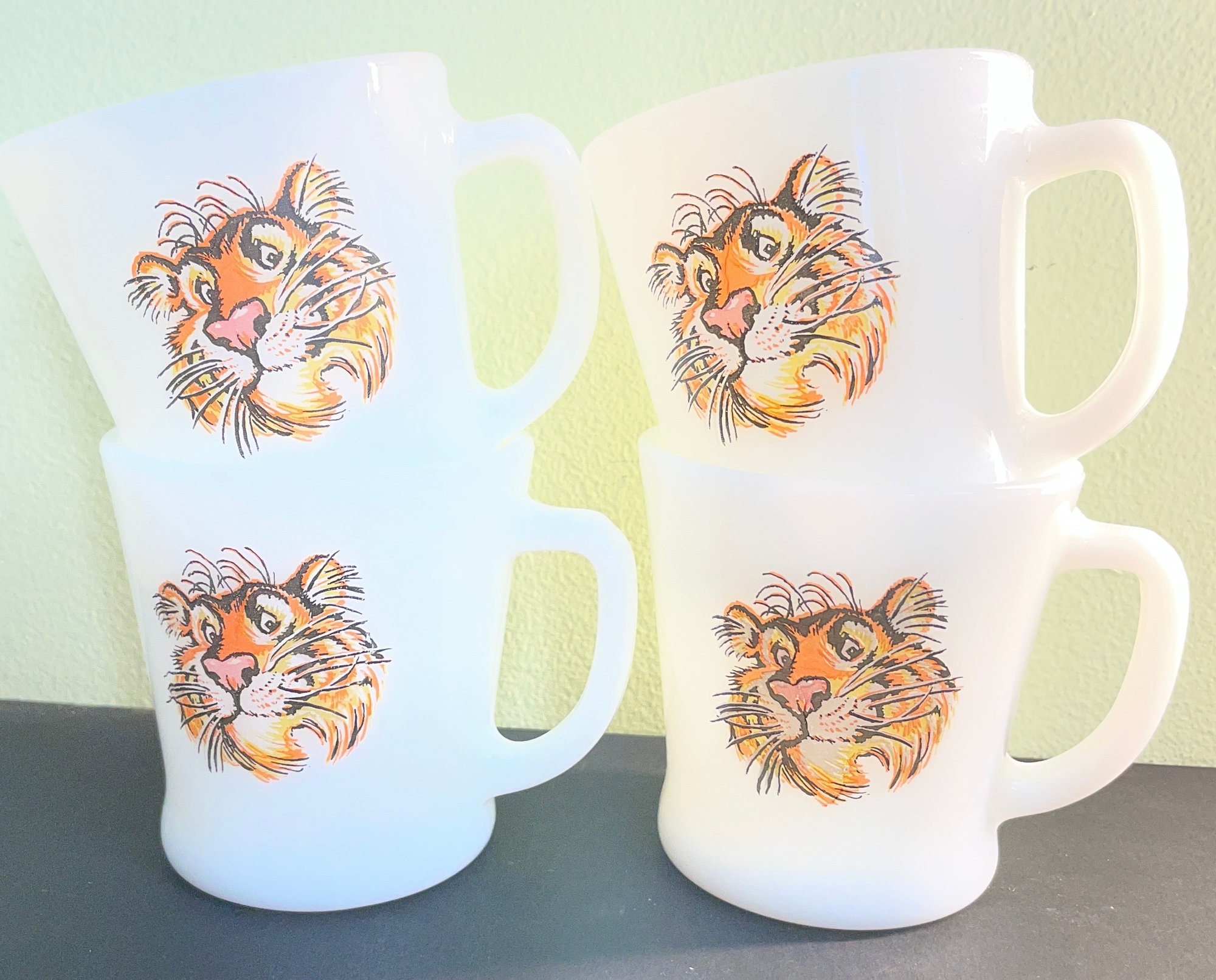 SET Vintage Exxon Tony Tiger Mug Milk Glass Mug Fire-King (4)