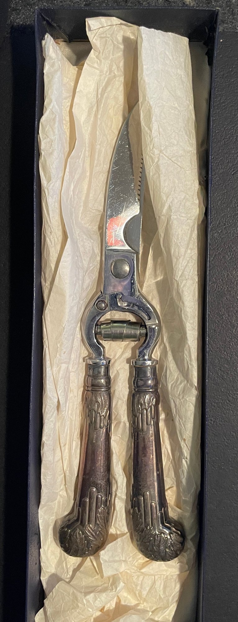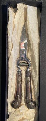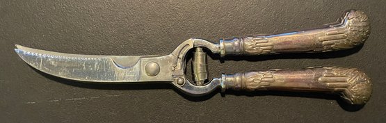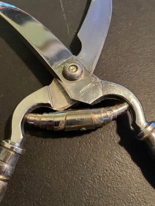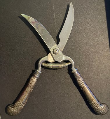 Sterling Silver Handled Repousse Poultry Shears Stainless Steel Blades - 11"