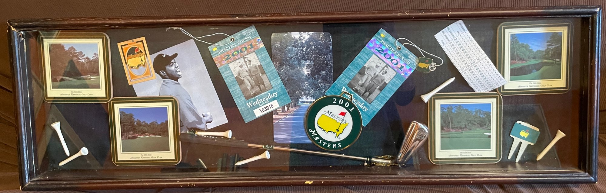 Tiger Woods Custom 1of 1 The Masters 2001 Shadow Box Commemorating his Masters Victory, 32x10x3"