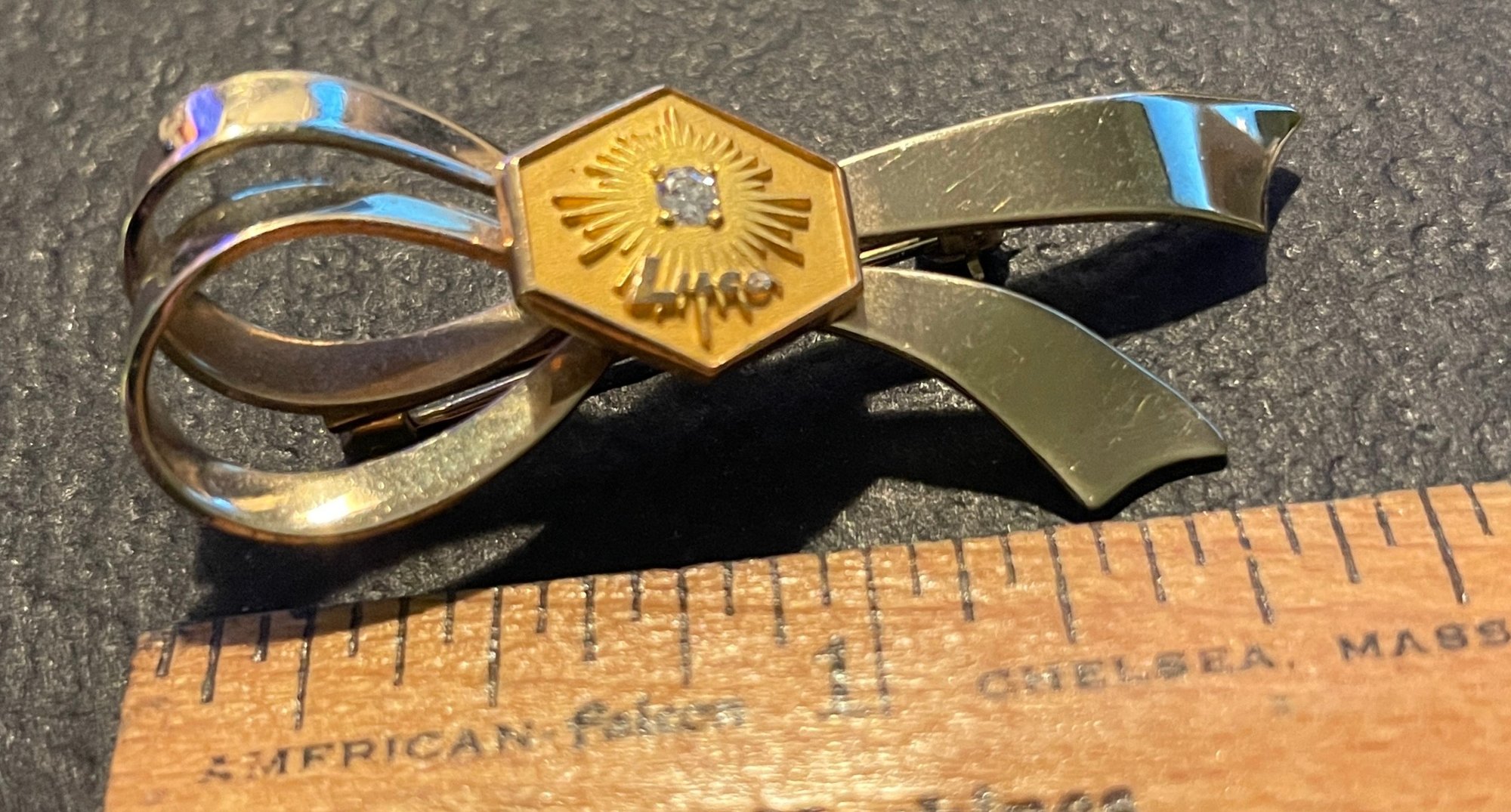 VINTAGE 12K GF LILCO RIBBON VAN DELL DIAMOND SERVICE PIN LONG ISLAND LIGHTING COMPANY