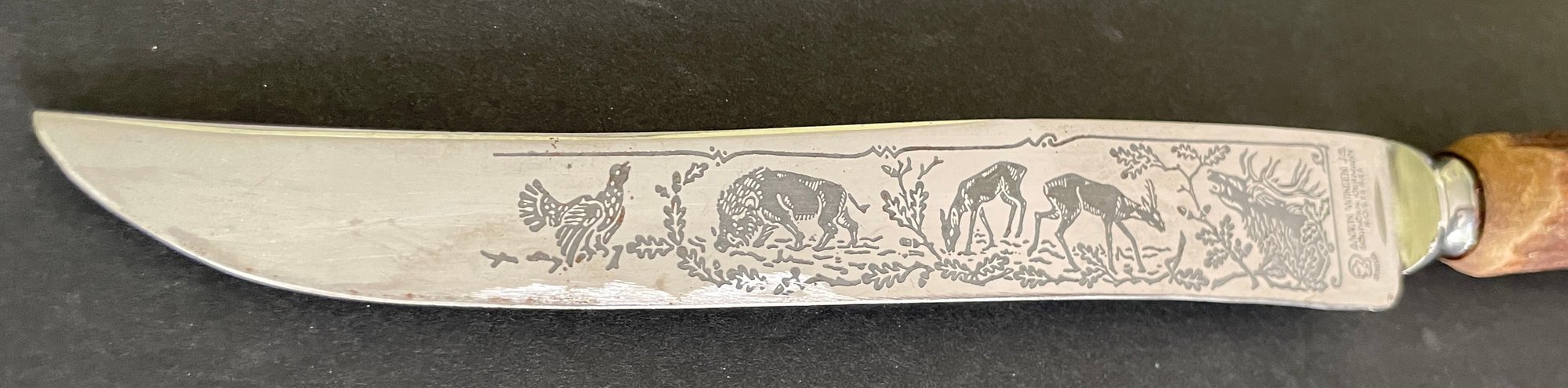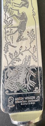 Vintage ANTON WINGEN JR. German Othello Stag Antler Handle Carving Knife 12.5" Total, 7.5" blade. Please see pictures as our best description and condition.