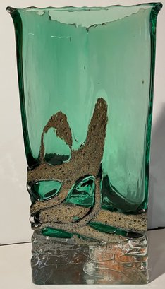 Vintage Artelier Beranek Bohemian Art Glass Triangular Czech Vase - Signed Approx. 12" Tall, heavy item. Local pickup preferred.