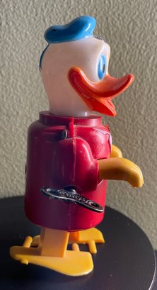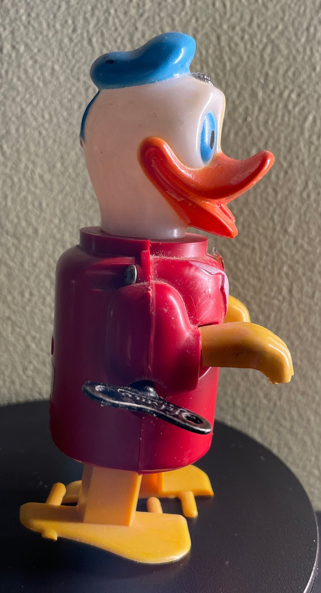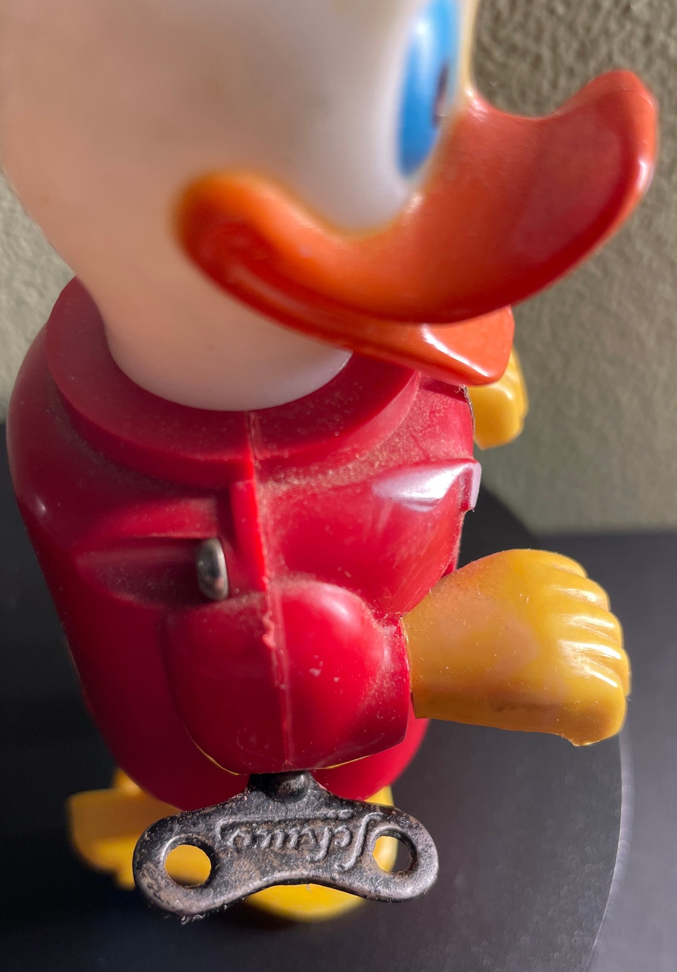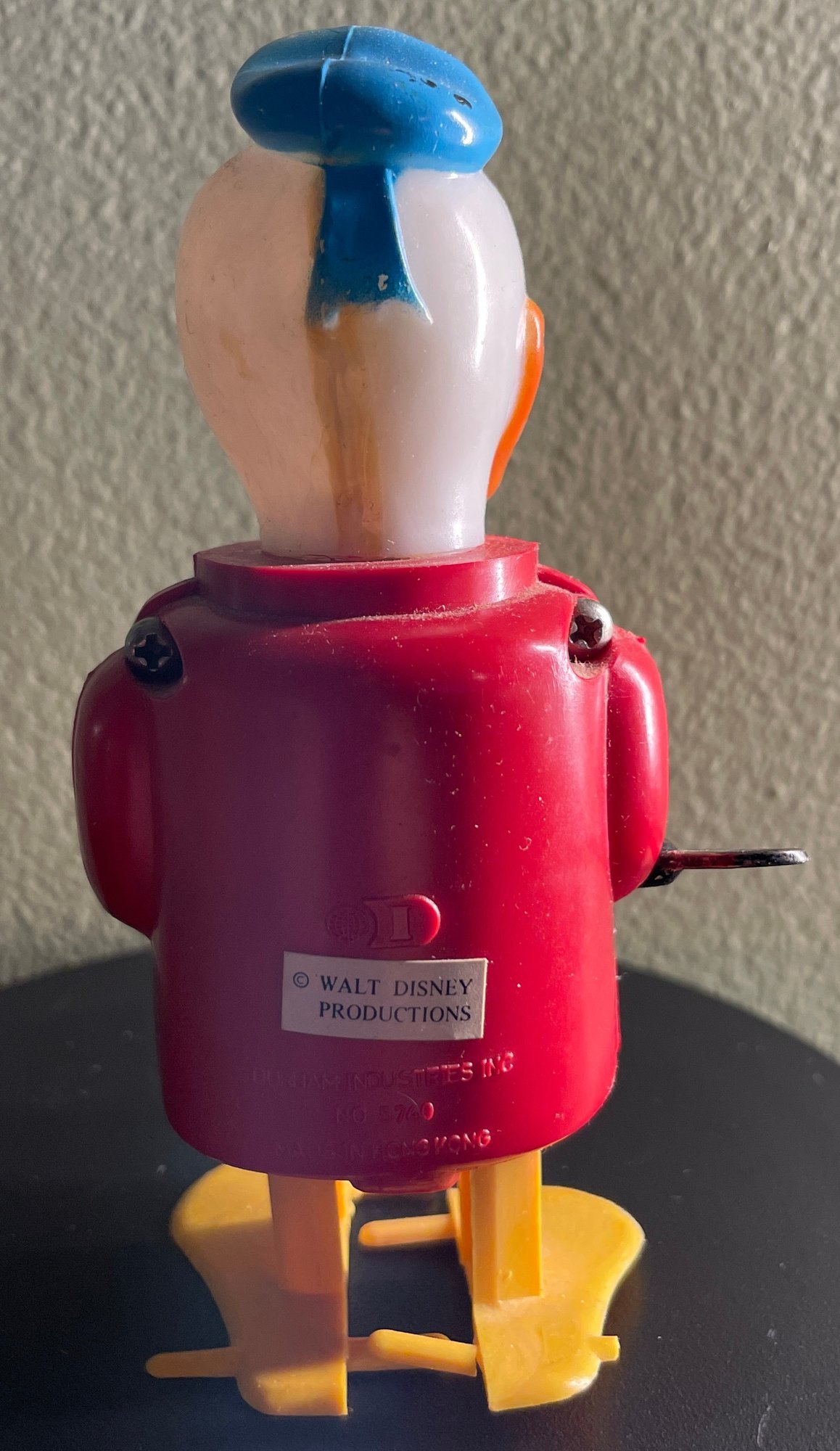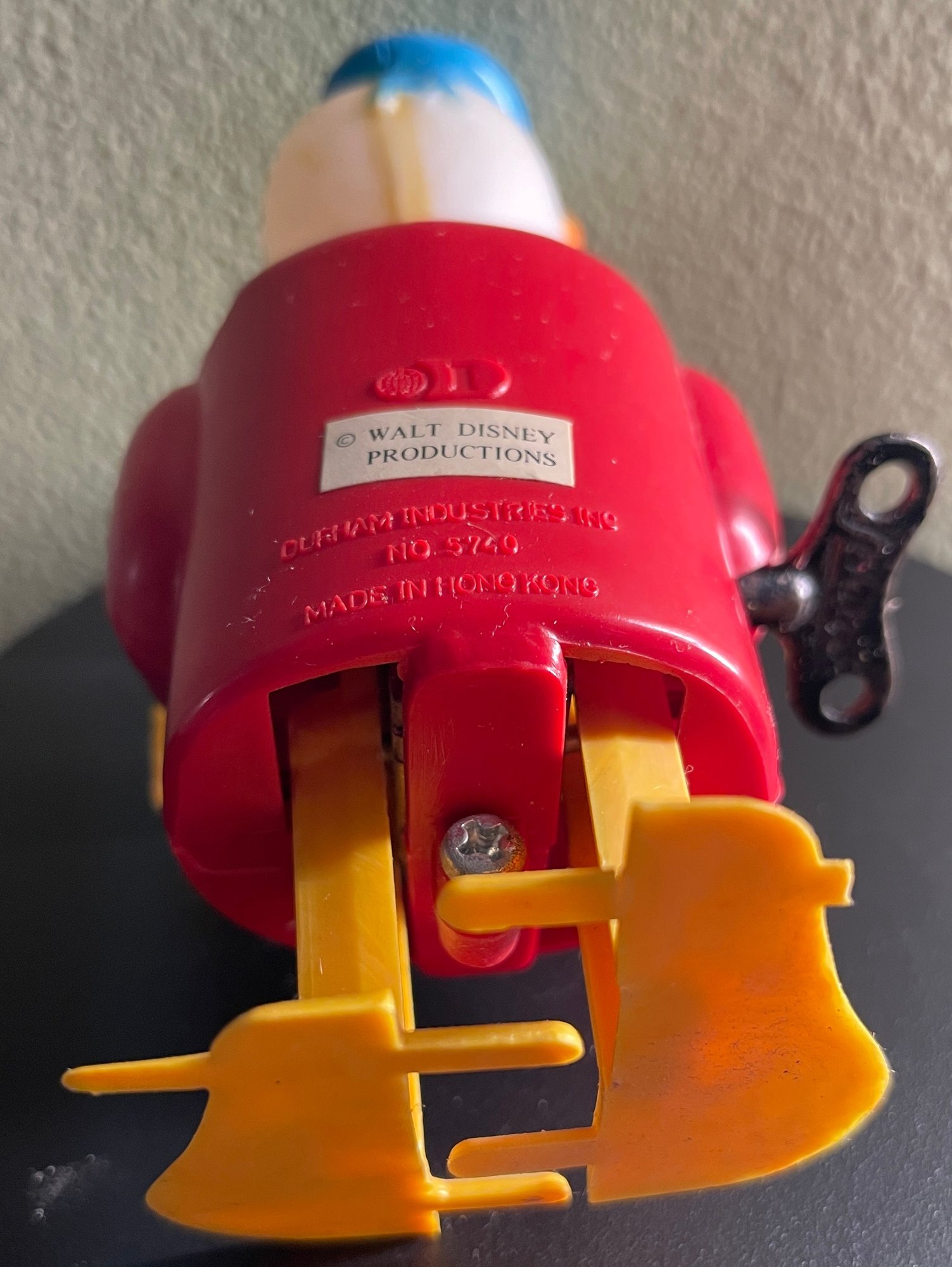 VINTAGE DURHAM INDUSTRIES WIND UP DONALD DUCK WALT DISNEY PRODUCTIONS JAPAN. Has a wind-up key. Needs servicing to walk properly. 4 1/2" tall.