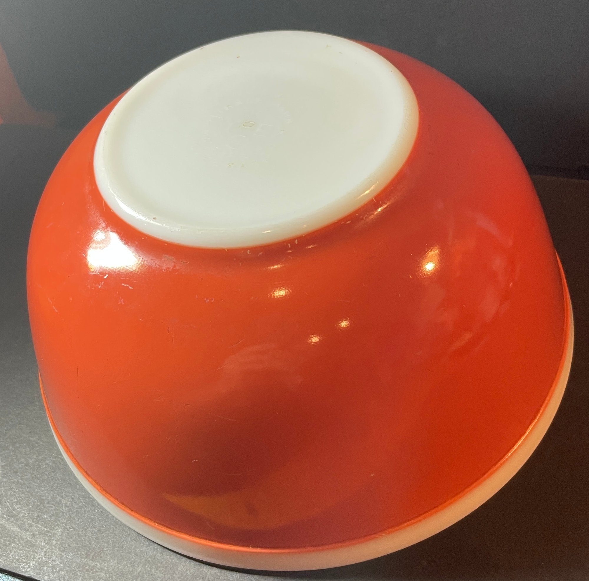 Pyrex 403 Orange 2.5 Quart Mixing Bowl. See pictures for wear from use.