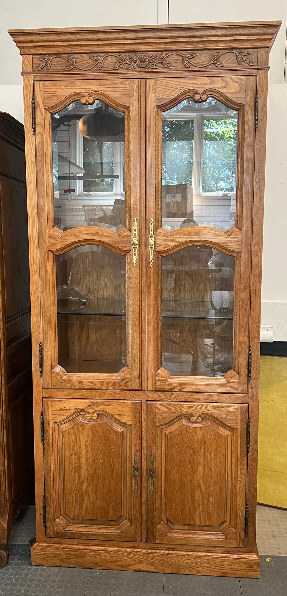 1980s Country French Walnut Baker Display Cabinet With Lattice Doors