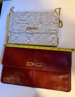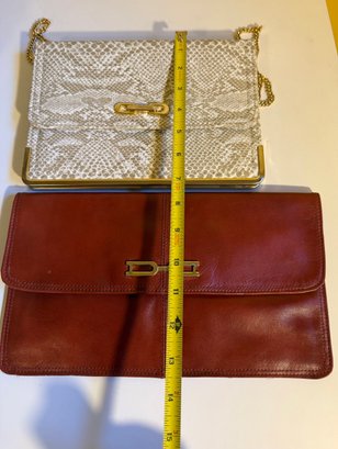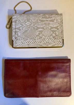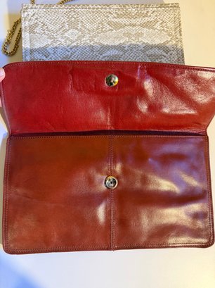 1980s Two Vintage Clutch Purses: One Snakeskin-style With A Gold Chain, One Red Leather.