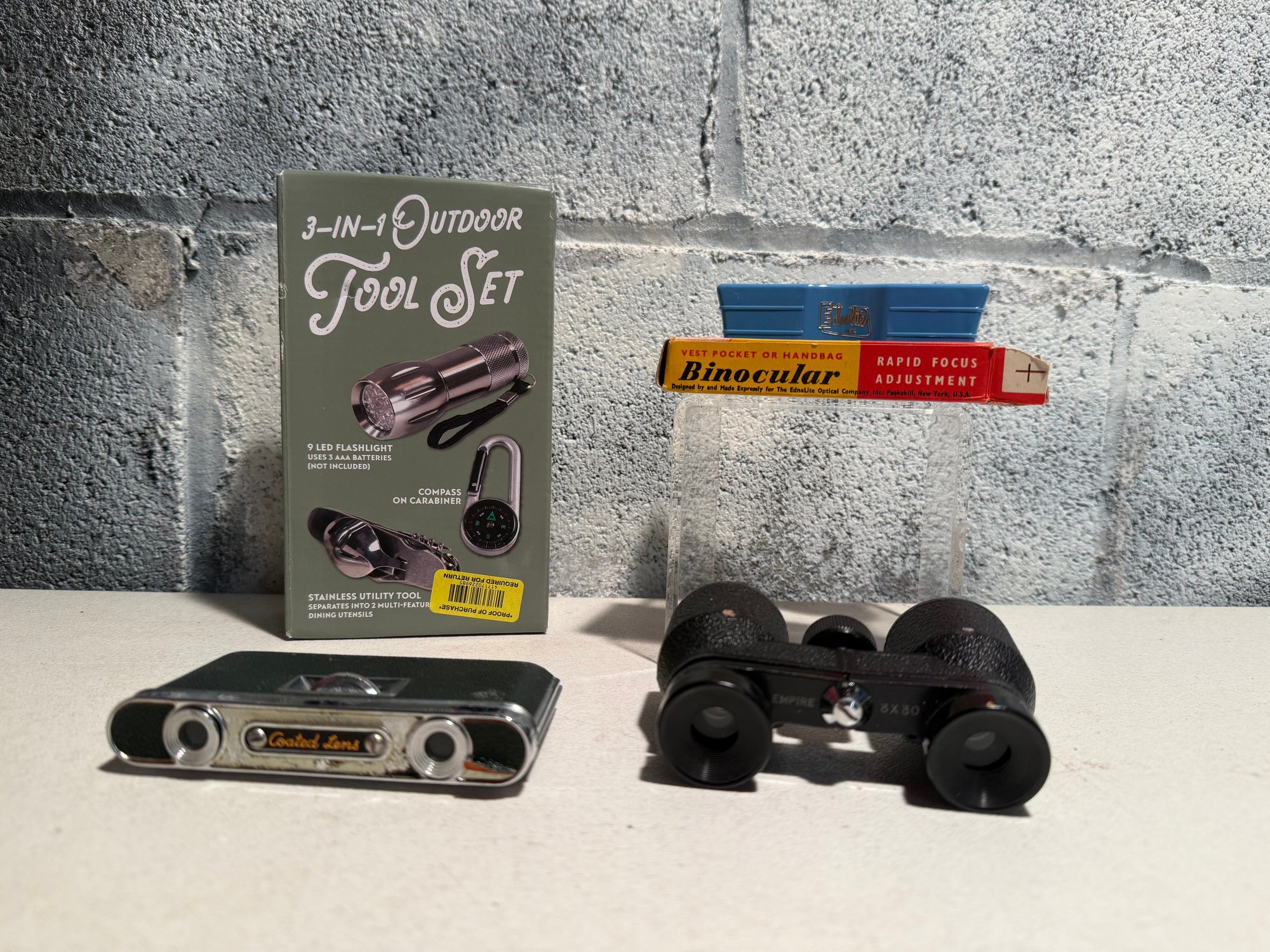 3-in-1 Outdoor Tool Set, Ednalite Vest Pocket Or Handbag Binocular, Folding Binoculars & Empire Binoculars