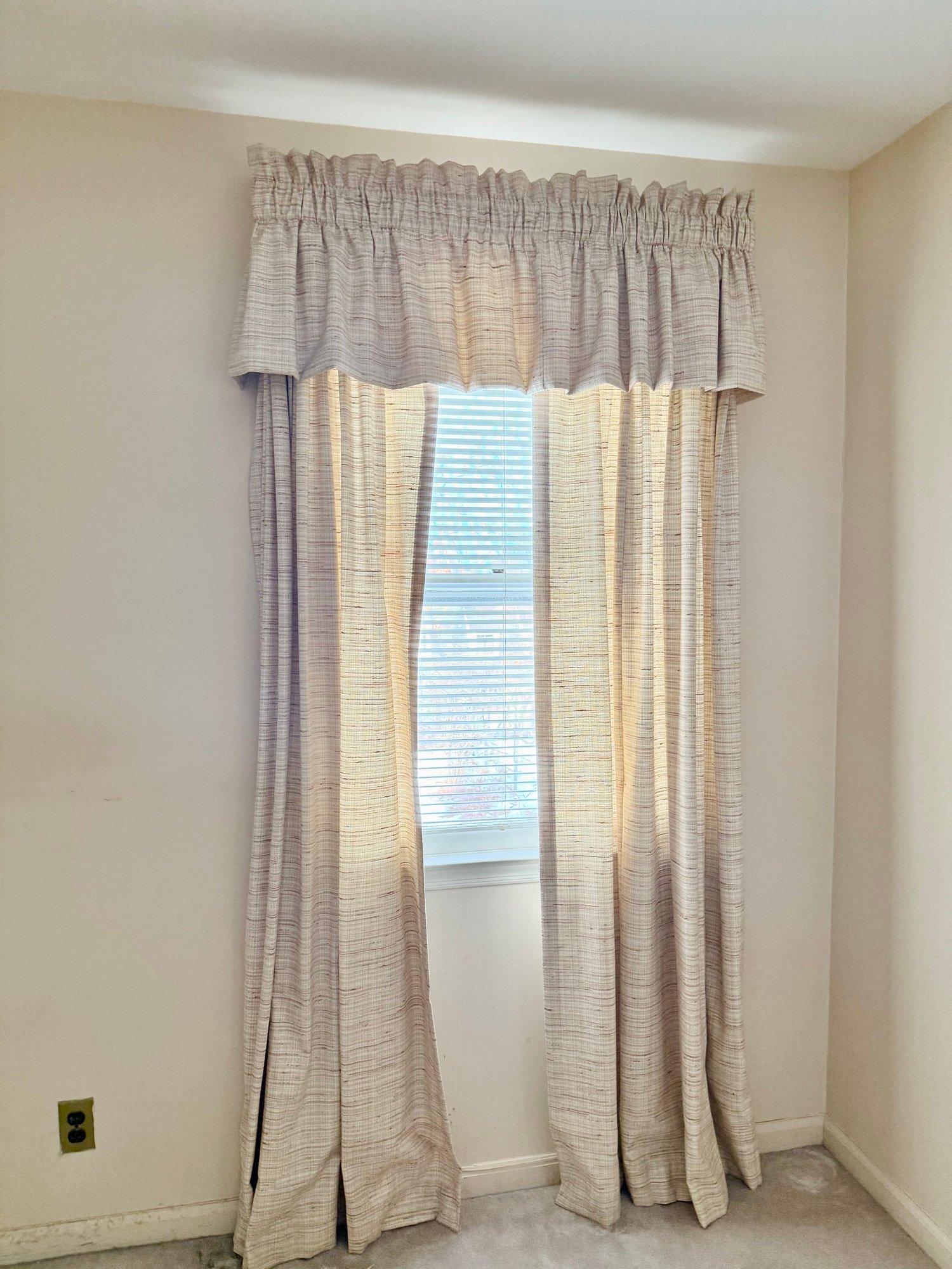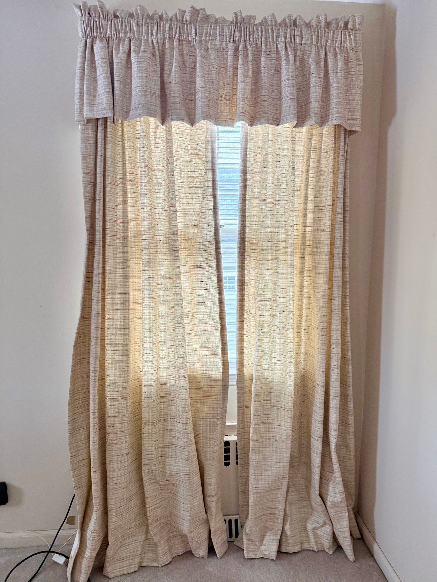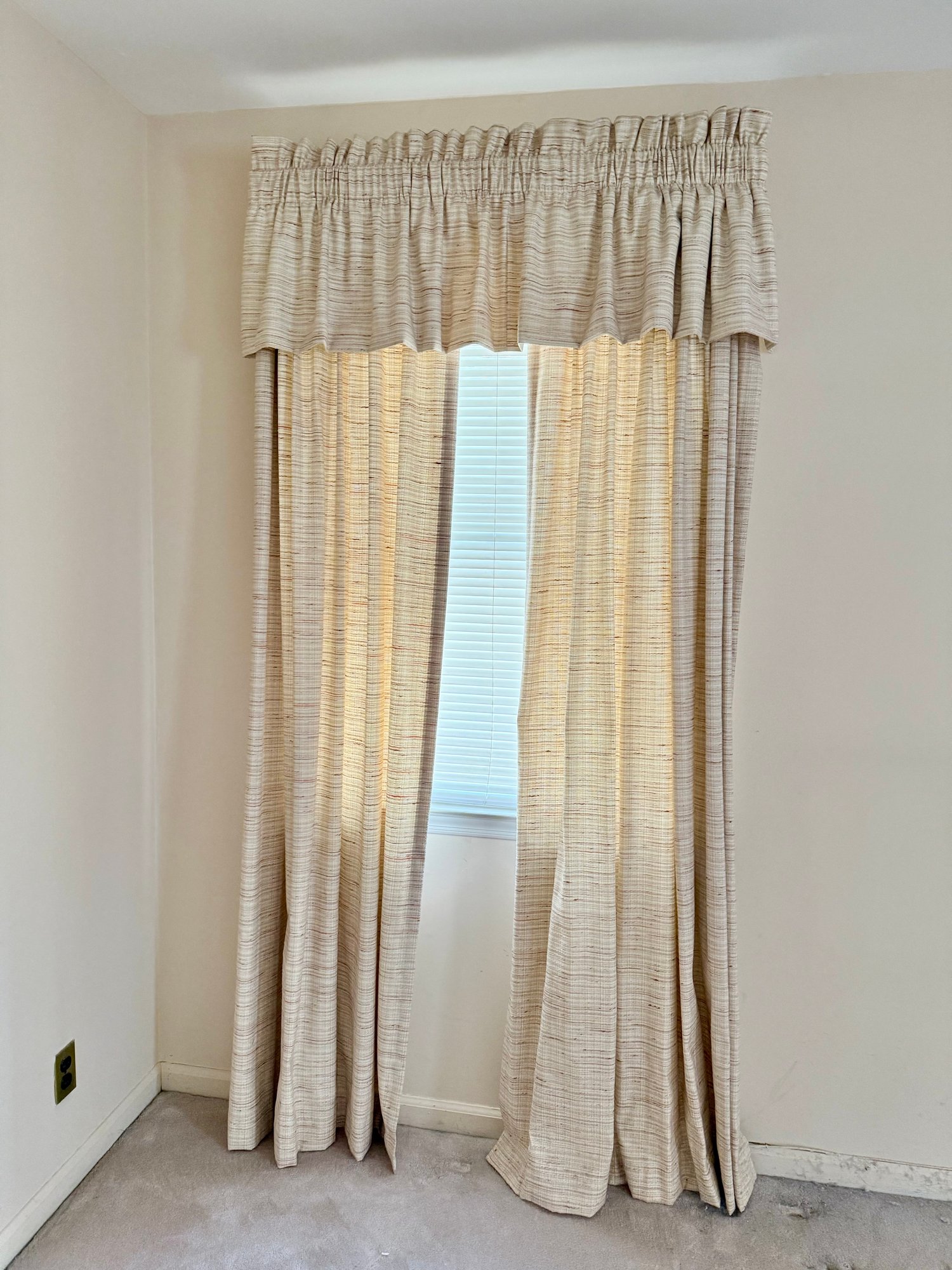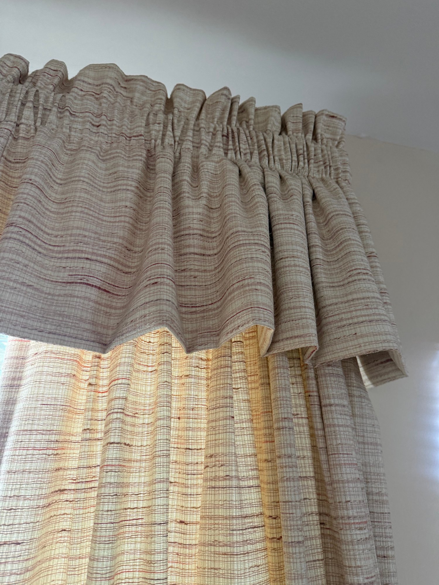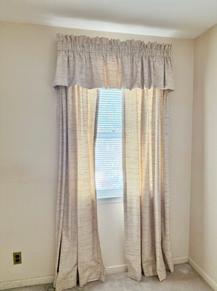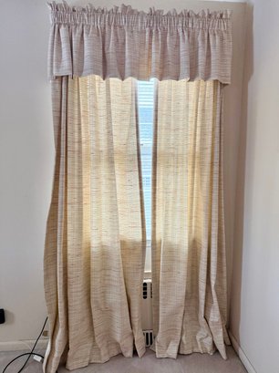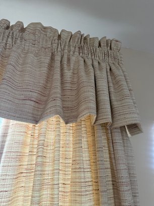 3-Modern Textured Striped Curtain Panels With A Ruffled Valance