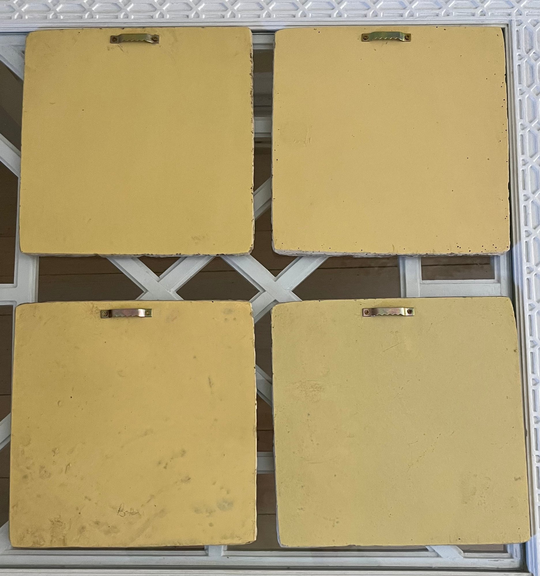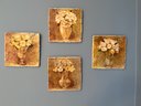 4 Ceramic Tiles, Flower Still Lifes, By Albena