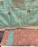 4 Silkish Beaded Purple And Turquoise Pillowcases And 1 Turquoise Throw