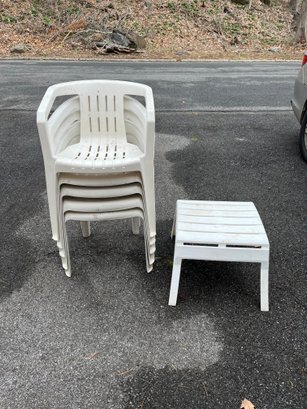 5 Plastic Chairs With Foot Rest / Table